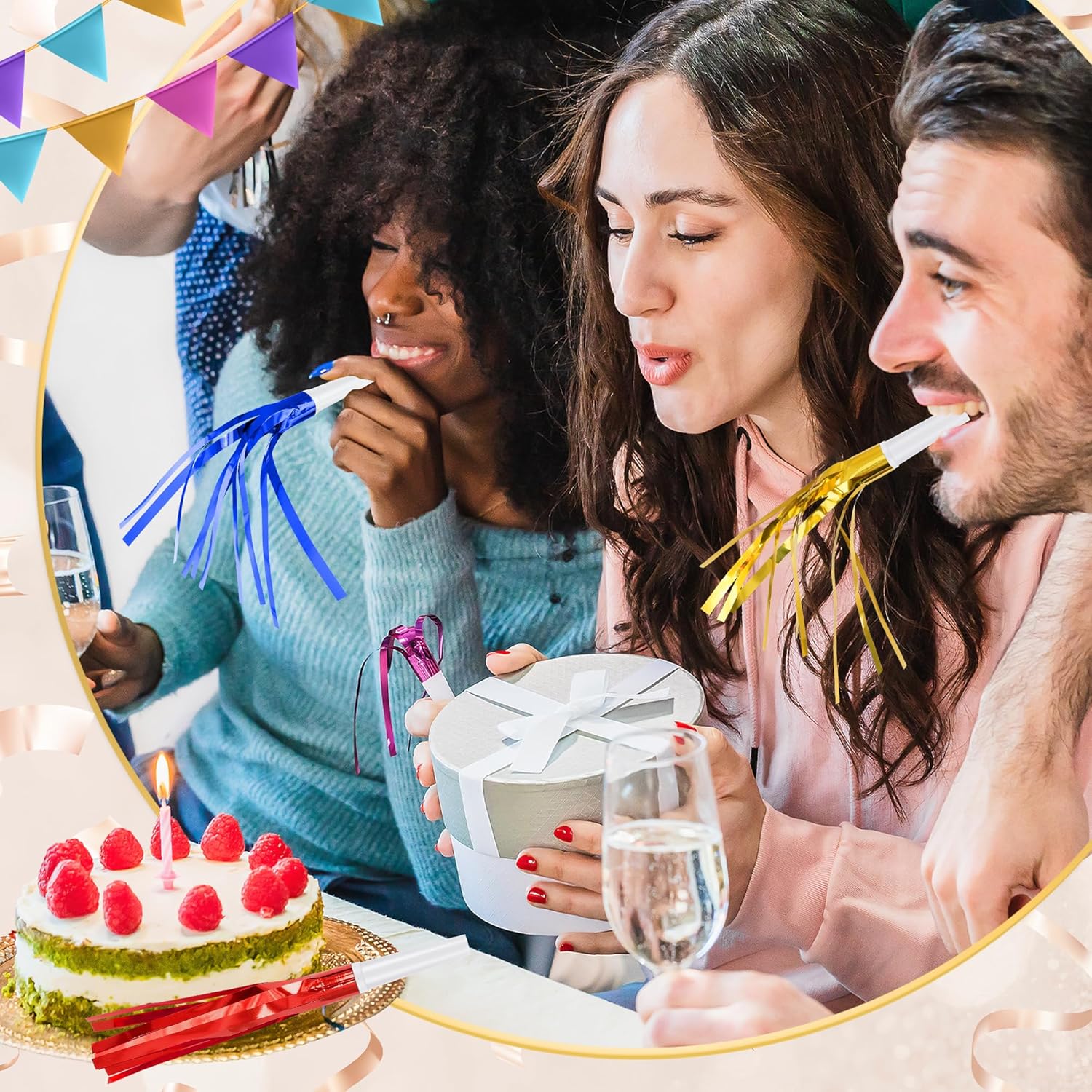 24 Pcs Glitter Noise Makers Metallic Fringed Party Blower for Adults Birthday Graduation New Years Party Favors Supplies (Colorful)