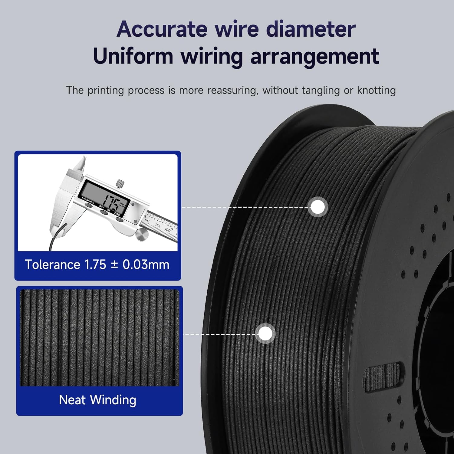 - 【Better Interlayer Adhesion】Carbon fiber PLA ensures close bonding between layers, thereby improving strength and durability, smoother surface, and less interlayer texture, which is ideal for complex designs and high-quality printing.