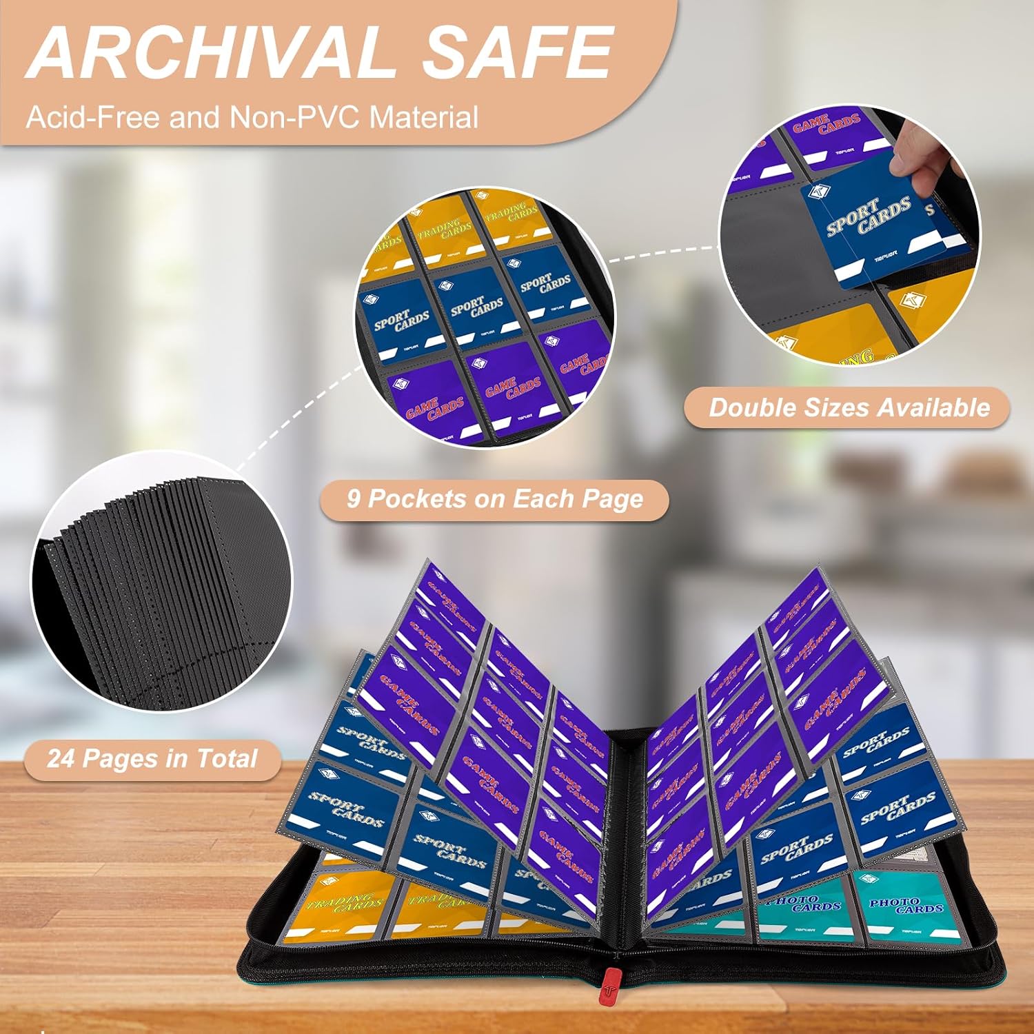 - 9 Pocket Card Binder: With 24 double-sided card pages, our trading card binder offers a whopping 432 card slots for maximum storage. Whether you're a serious card collector or simply need a place to organize your collectible cards, this card album provides ample room for all your needs.