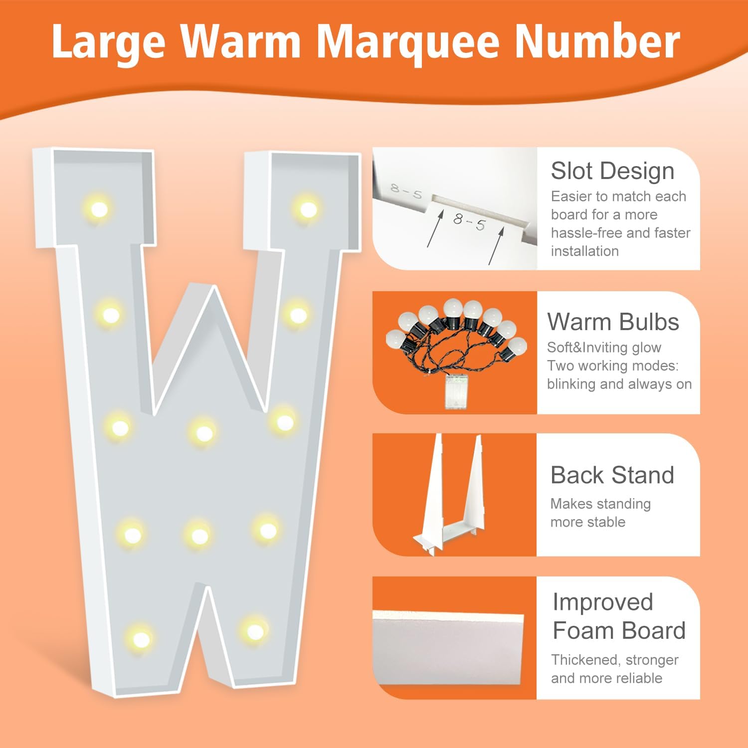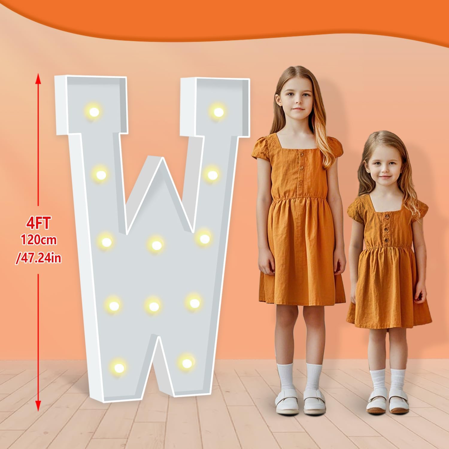 4FT Marquee Letters, Warm Light Marquee Light Up Letters W, Large Light Up Letter for Birthday Anniversary Wedding Engagement Decorations, Big Letter Signs for Party Decor