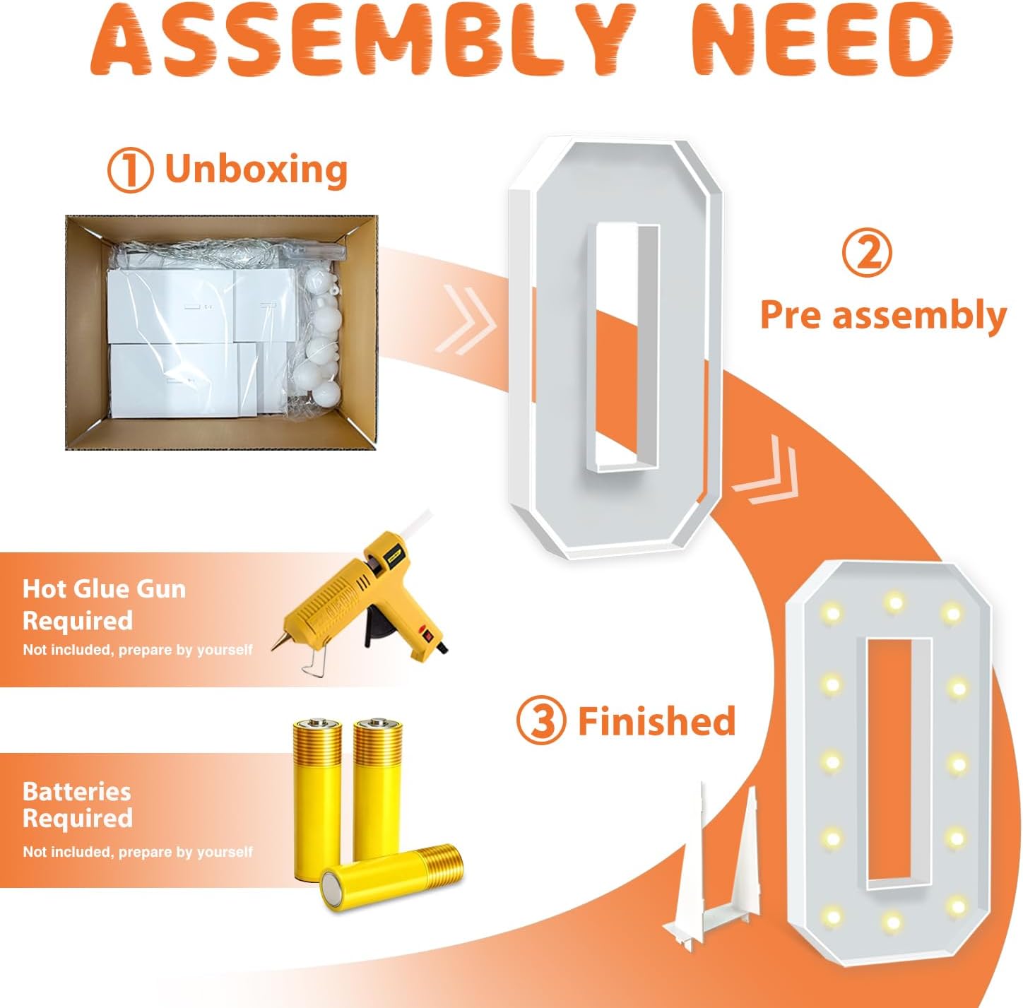- EASY TO ASSEMBLE: The package includes pre-cut foam boards, light strings and instructions. Each foam board has slots and is numbered, so you can match them according to the 2 same numbers. All you need to do is to prepare a hot glue gun and 3 AA batteries, follow the step-by-step instructions or online video for a hassle-free assembly. Decorate the party with your kids or friends and enjoy the DIY fun. (Note: Glue gun, glue and batteries are not included)