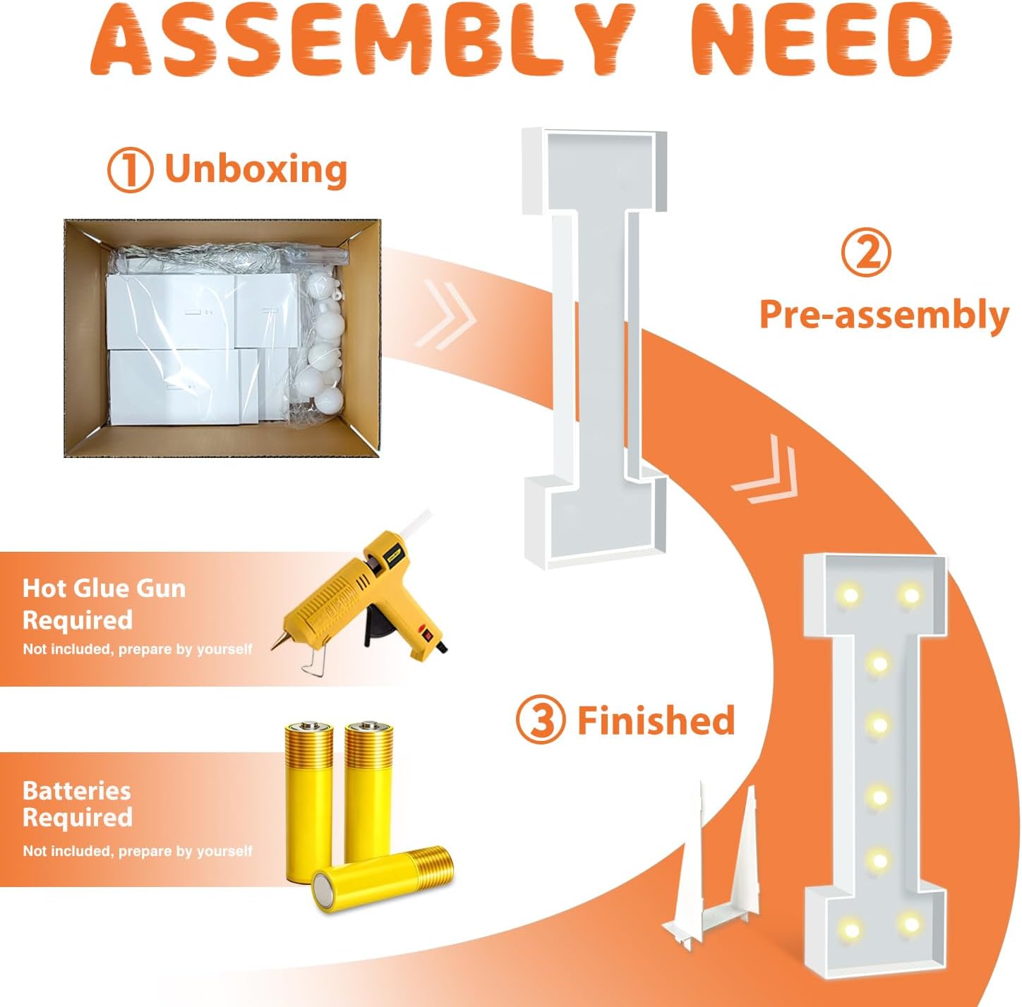- EASY TO ASSEMBLE: The package includes pre-cut foam boards, light strings and instructions. Each foam board has slots and is numbered, so you can match them according to the 2 same numbers. All you need to do is to prepare a hot glue gun and 3 AA batteries, follow the step-by-step instructions or online video for a hassle-free assembly. Decorate the party with your kids or friends and enjoy the DIY fun. (Note: Glue gun, glue and batteries are not included)