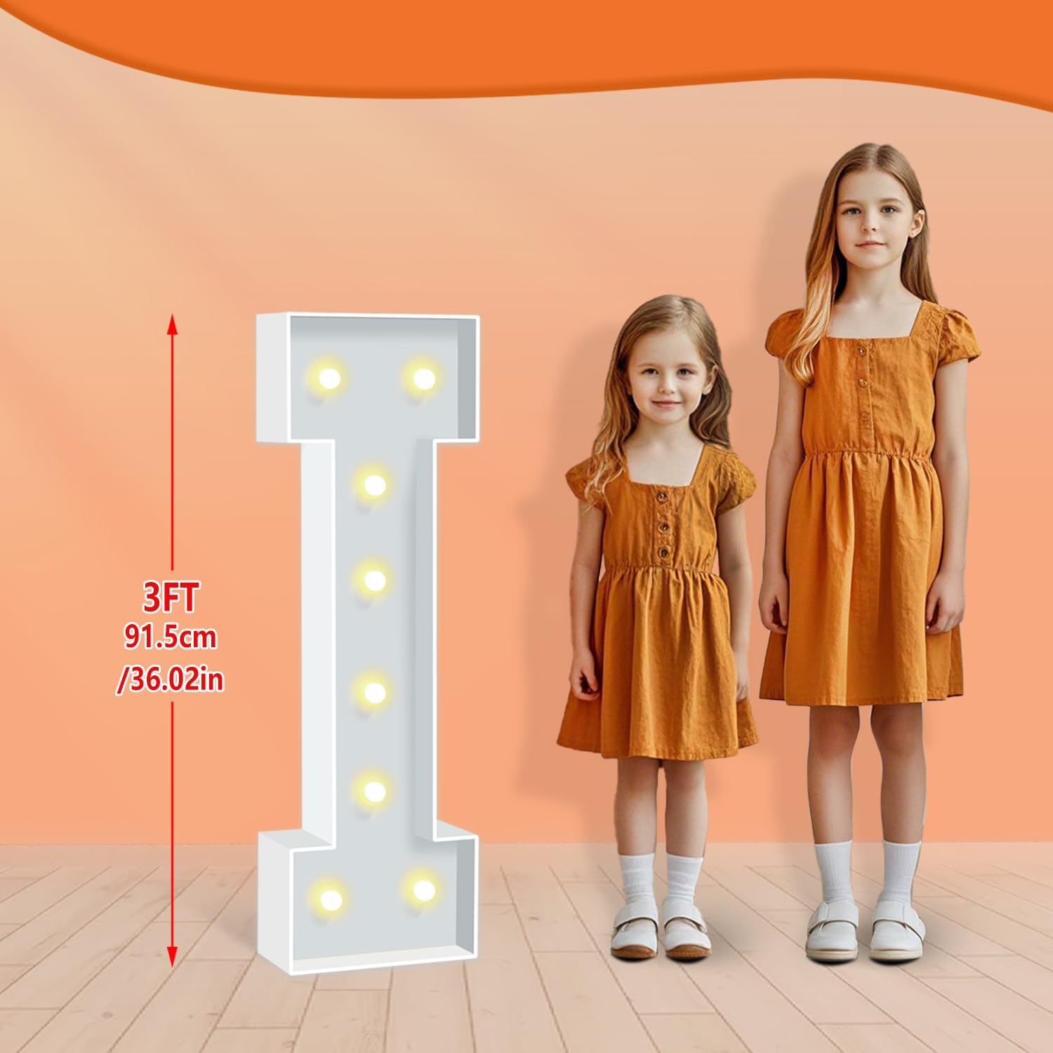 - BRIGHT & SAFE LIGHTING: The light up letters are powered by 3 AA batteries(not included), ensuring the safety of all your guests. There's a switch on the battery compartment, you can switch the Warm Yellow led light from steady to cheerful flashing, ideal for creating a cozy, inviting ambiance to any celebration or event.