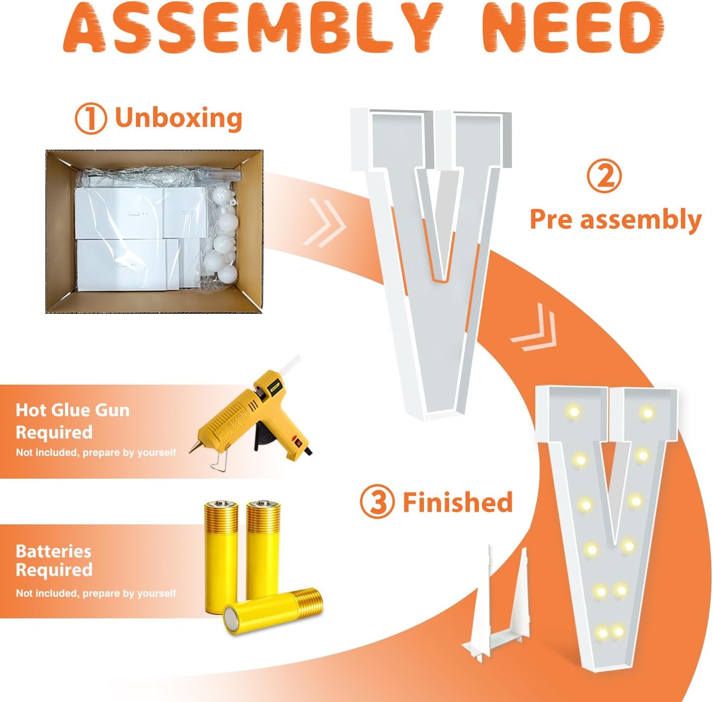 - EASY TO ASSEMBLE: The package includes pre-cut foam boards, light strings and instructions. Each foam board has slots and is numbered, so you can match them according to the 2 same numbers. All you need to do is to prepare a hot glue gun and 3 AA batteries, follow the step-by-step instructions or online video for a hassle-free assembly. Decorate the party with your kids or friends and enjoy the DIY fun. (Note: Glue gun, glue and batteries are not included)