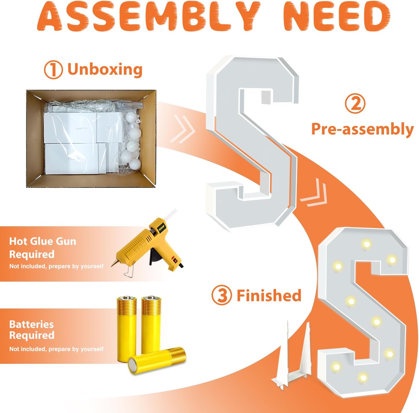 - EASY TO ASSEMBLE: The package includes pre-cut foam boards, light strings and instructions. Each foam board has slots and is numbered, so you can match them according to the 2 same numbers. All you need to do is to prepare a hot glue gun and 3 AA batteries, follow the step-by-step instructions or online video for a hassle-free assembly. Decorate the party with your kids or friends and enjoy the DIY fun. (Note: Glue gun, glue and batteries are not included)