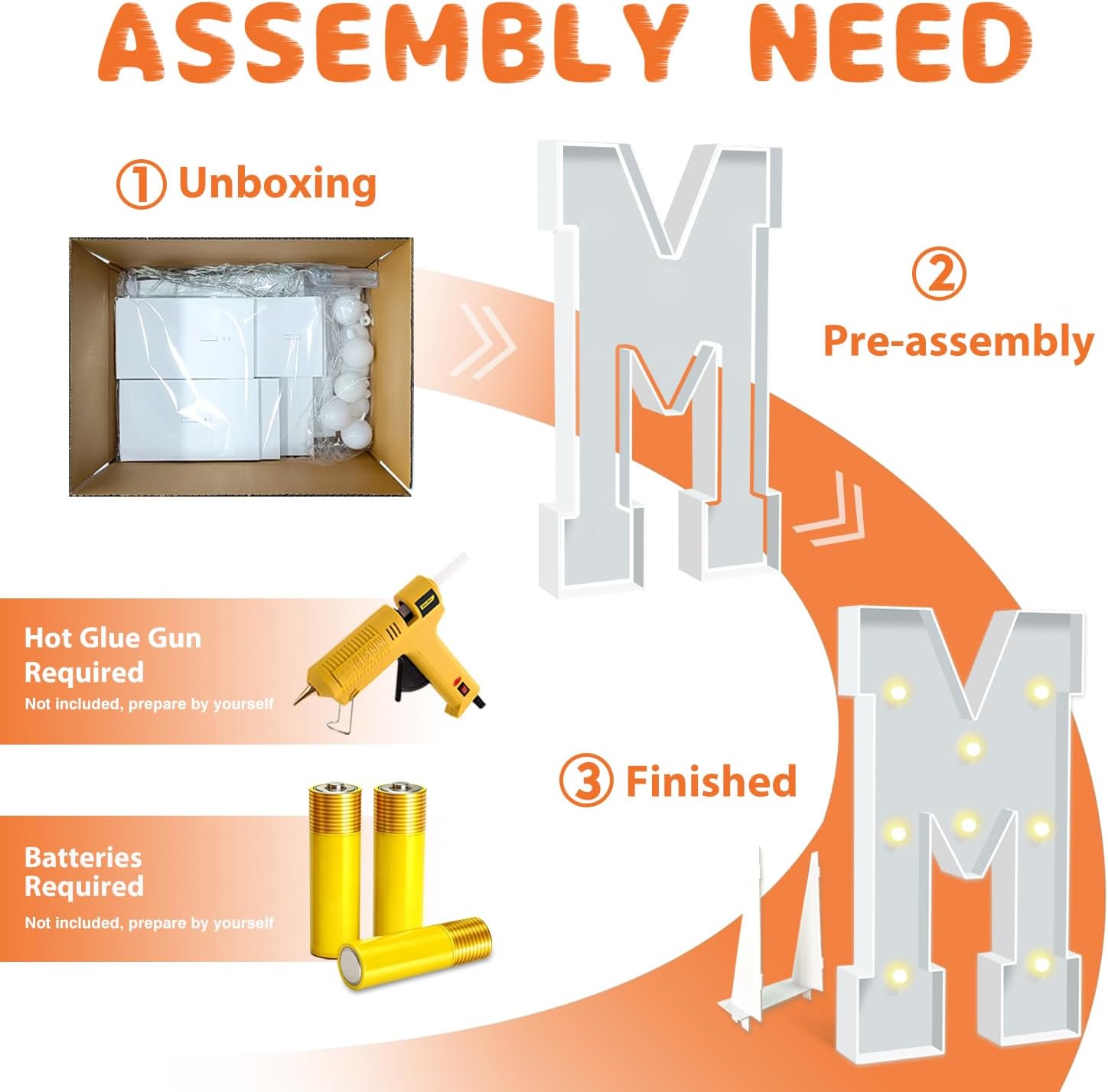 - EASY TO ASSEMBLE: The package includes pre-cut foam boards, light strings and instructions. Each foam board has slots and is numbered, so you can match them according to the 2 same numbers. All you need to do is to prepare a hot glue gun and 3 AA batteries, follow the step-by-step instructions or online video for a hassle-free assembly. Decorate the party with your kids or friends and enjoy the DIY fun. (Note: Glue gun, glue and batteries are not included)