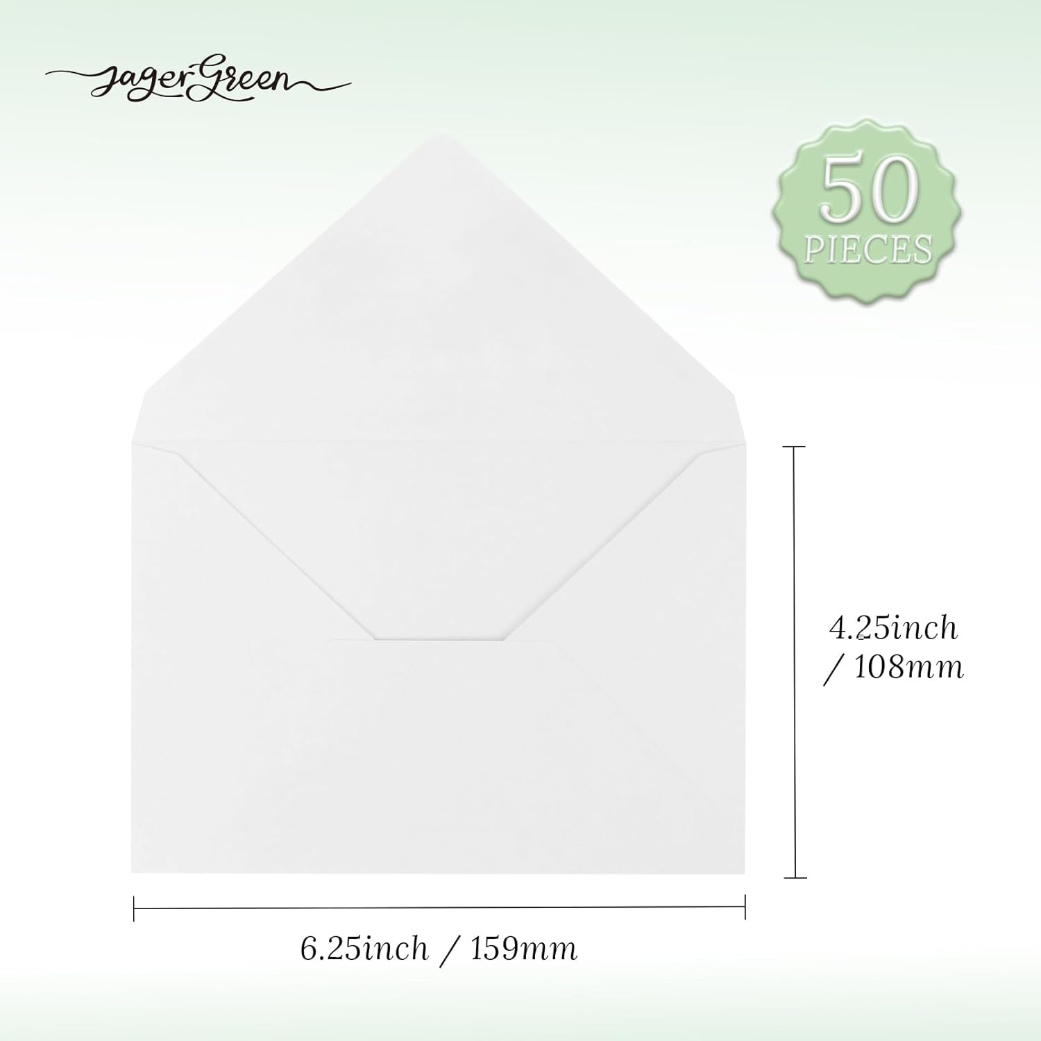 - Premium Material: JagerGreen 50 Pack A4 size (4.3" x 6.3"/10.8 cm x 15.9 cm) envelopes is made of high-quality colored 100 lb. TEXT / 40 lb. BOND/ 150 GSM paper stock, you cannot see right through the envelopes, your privacy will be well protected. Large enough to comfortably fit 4" x 6" items, ensuring durability and a professional look.