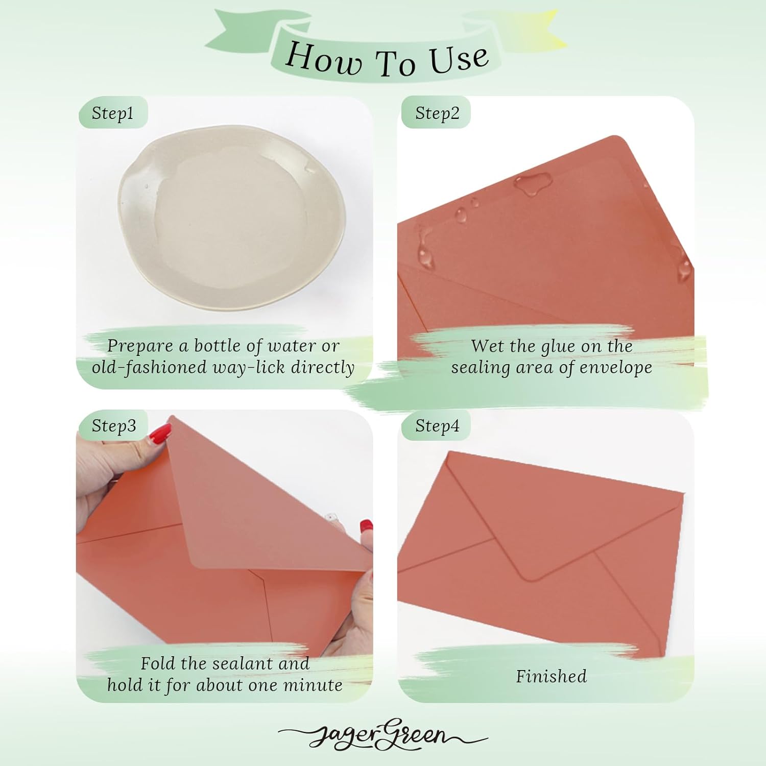 - Effortless Sealing: Simply moisten the adhesive strip on the envelope's flap, fold, and press for about one minute. Our water-activated glue ensures a secure seal, keeping your messages and contents safe.