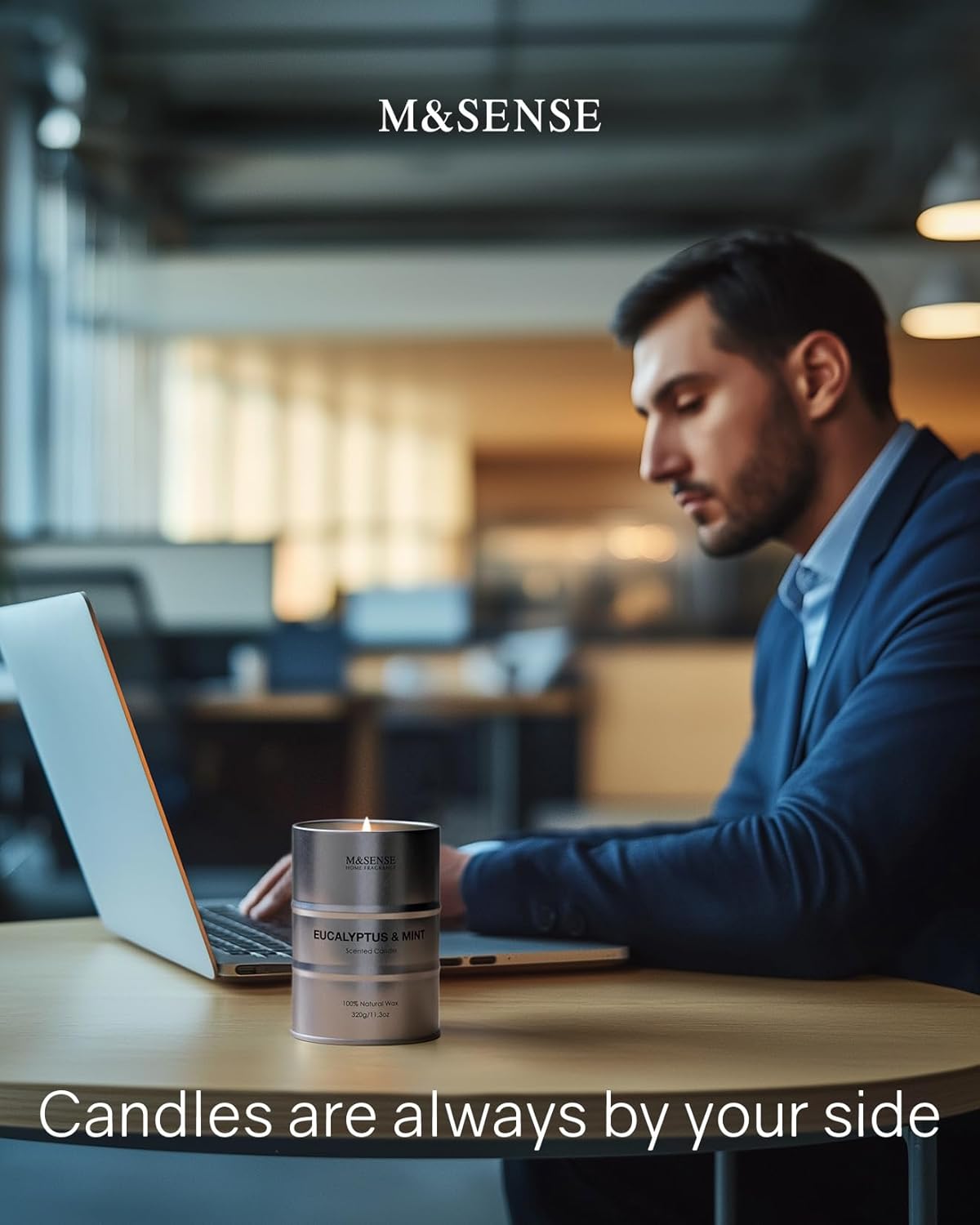 M&SENSE Scented Candle, Eucalyptus Mint Medium Jar Candle for Men, 70 Hours Slow Burning Natural Soy Candles 11.3oz, Stress Relief Aromatherapy Candles Home Decor, Valentines Day Gifts for Him