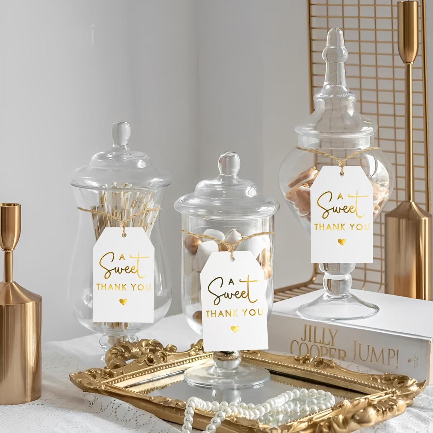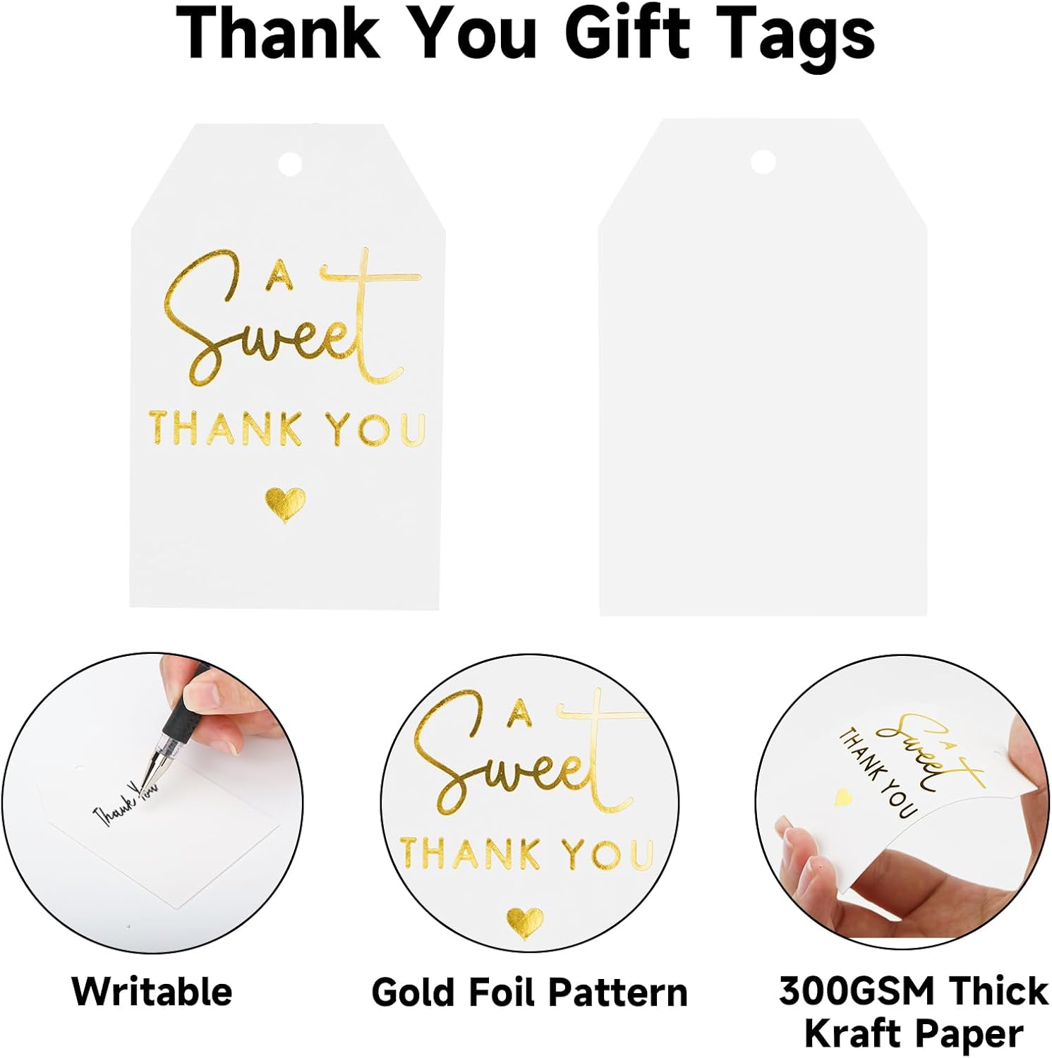 A Sweet Thank You Tags, joycraft 50Pcs Gold Thank You Gift Tags with String, 3x2 in White Kraft Paper Gift Tags, Sweet Thank You Tags for Wedding, Baby Shower, Birthday, Anniversary, Gift Wrap