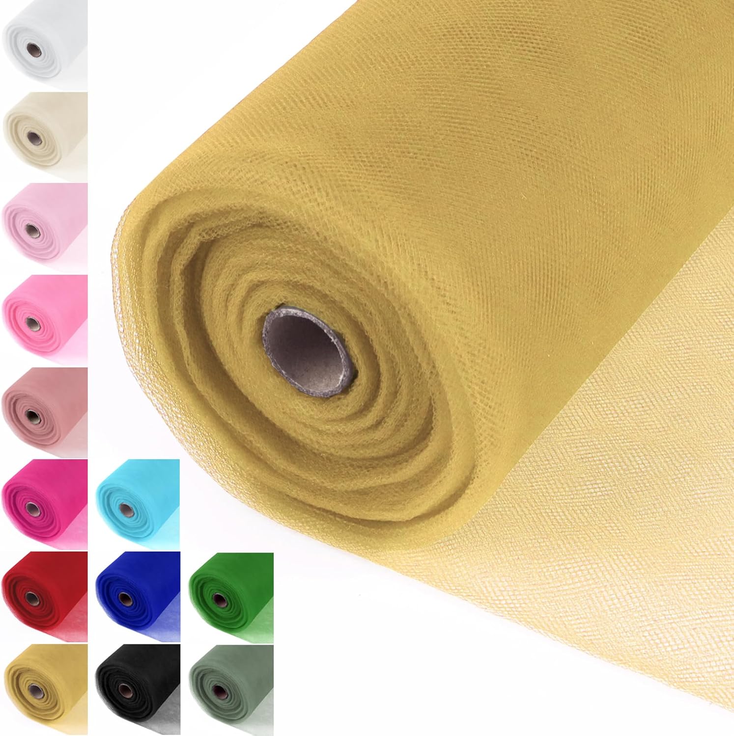 Dull Gold Yellow Tulle Fabric Rolls 54 Inch x 40 Yards Large Mesh Tull Bolt for Wedding, Garden Netting, Tutu Skirt, Party Decoration and Craft Supplies