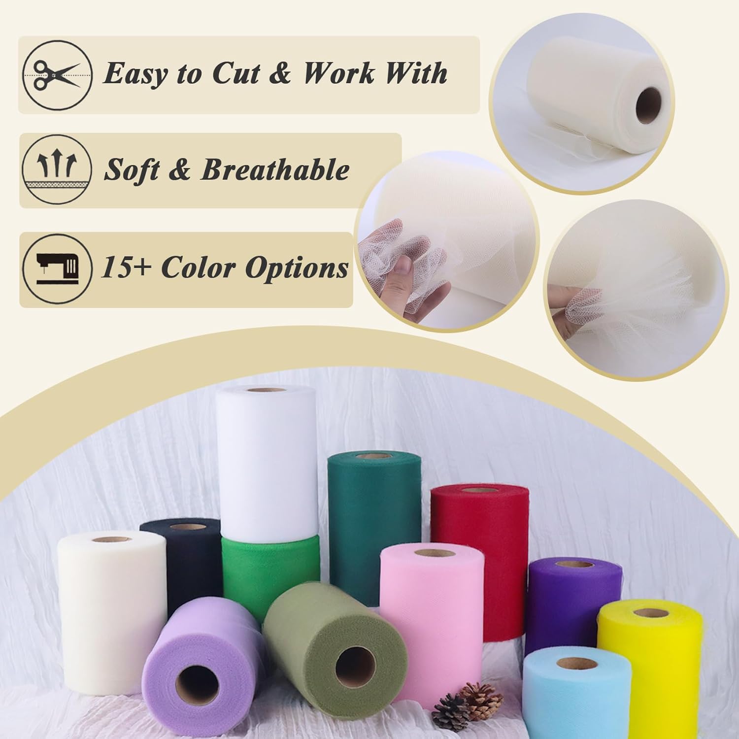 - Continuous Tulle Rolls: This tulle fabric comes in continuous 100 yards without a break. Provides ample materials for a variety of craft, decor and fashion projects