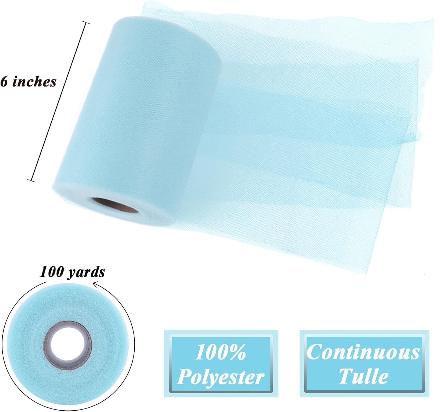 - Continuous Tulle Rolls: This tulle fabric comes in continuous 100 yards without a break. Provides ample materials for a variety of craft, decor and fashion projects