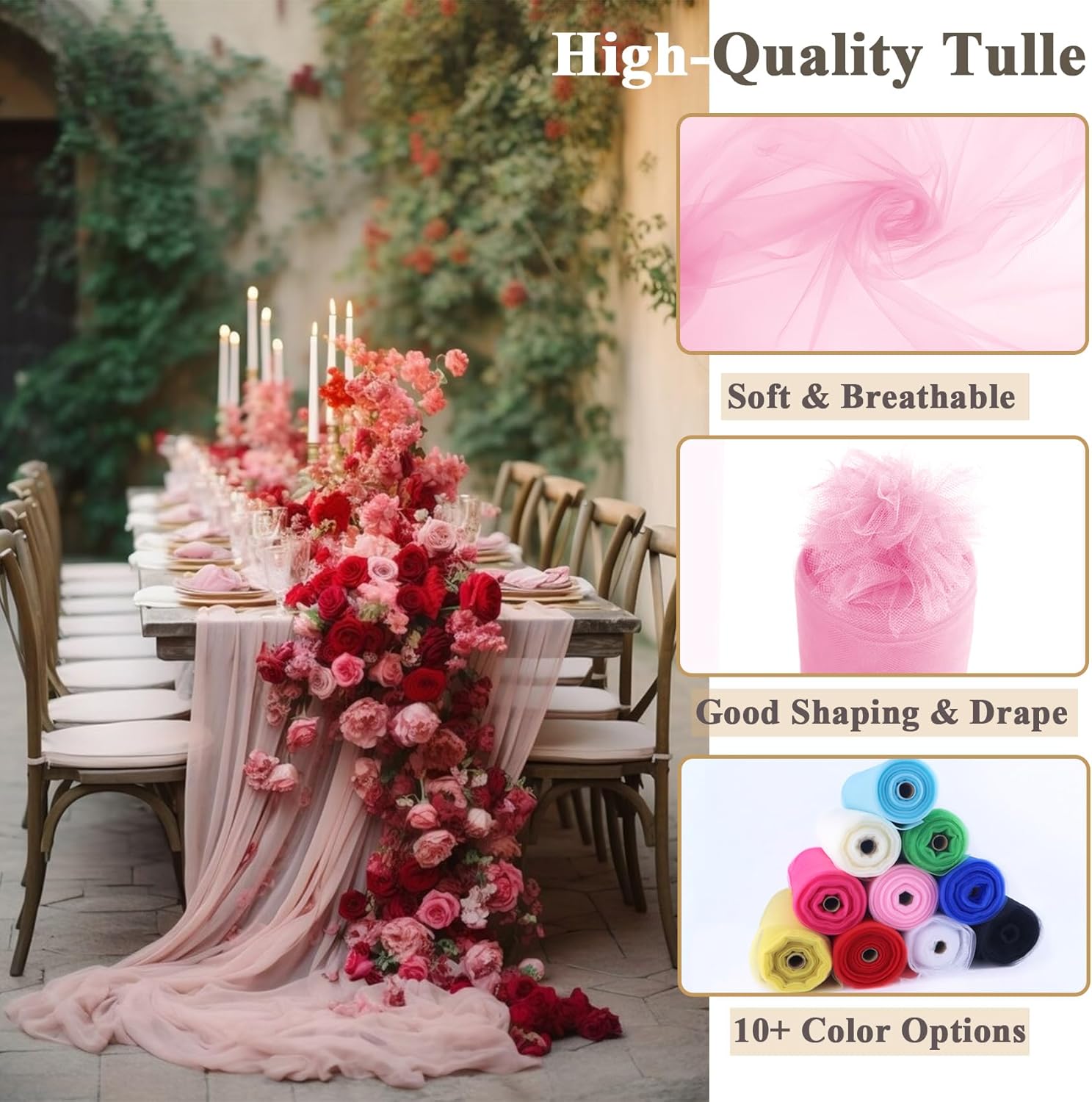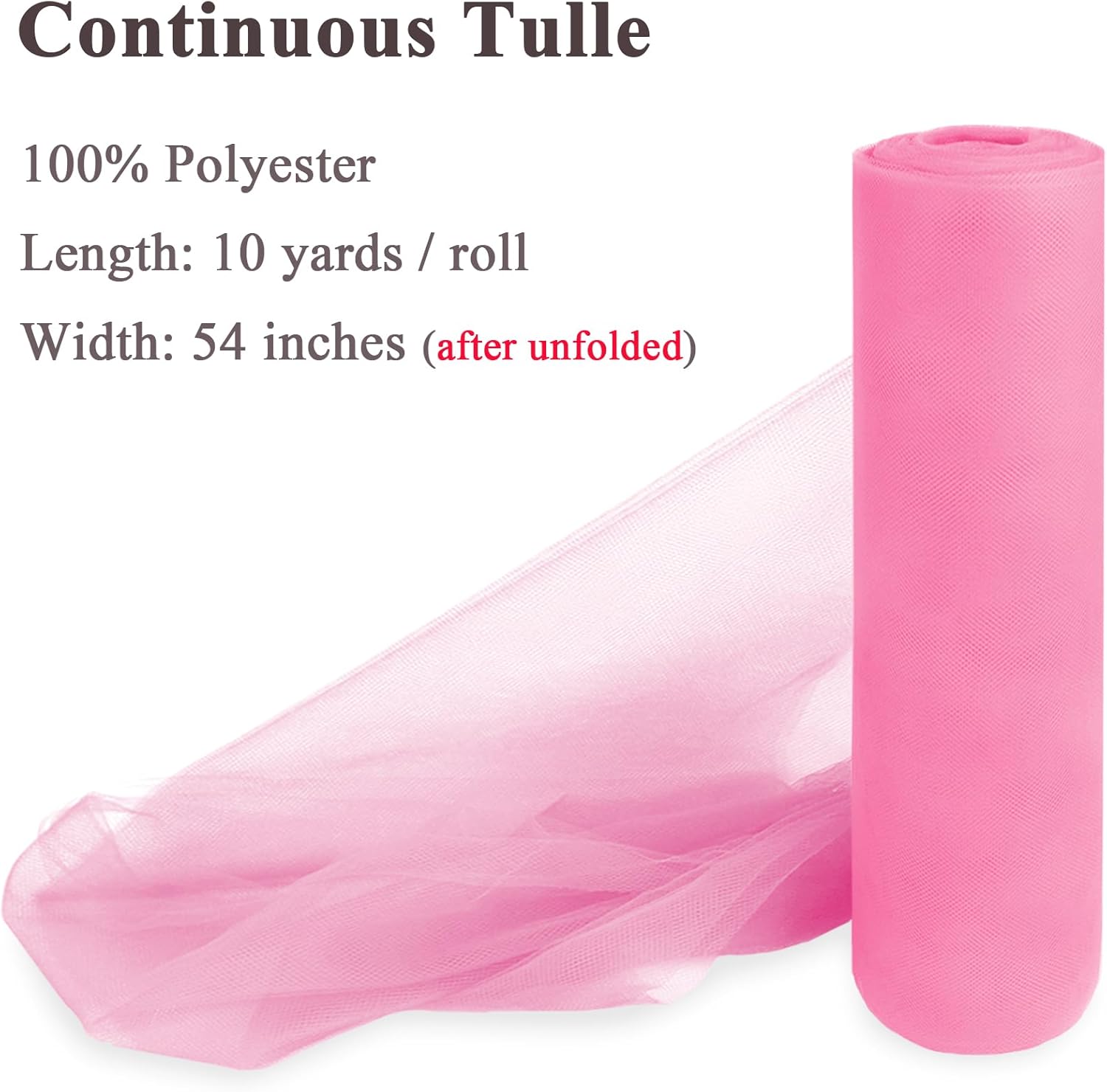 Pink Tulle Fabric Rolls 54 Inch x 10 Yards Large Mesh Tull Bolt for Wedding, Garden Netting, Tutu Skirt, Party Decoration and Craft Supplies