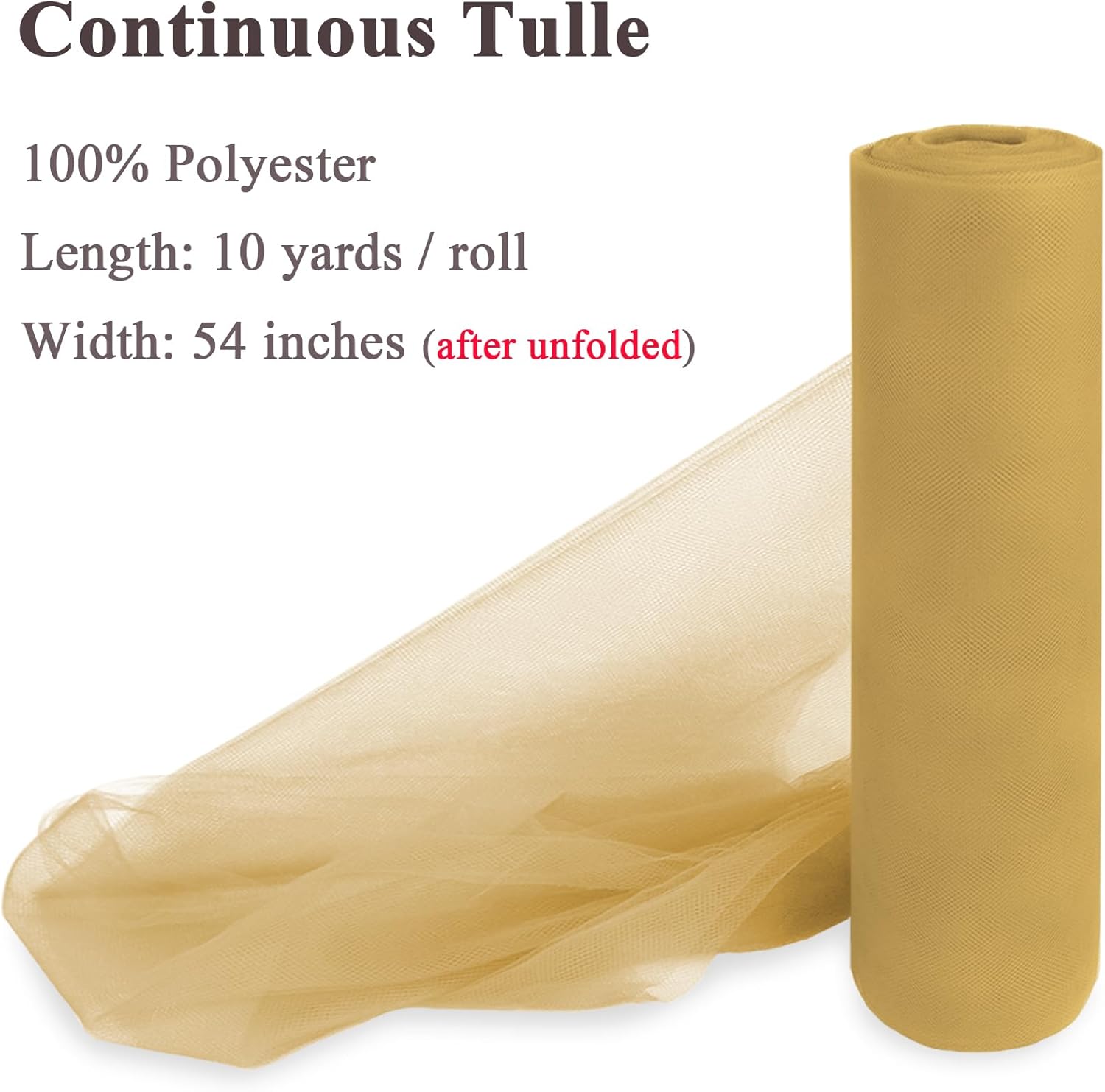 Dull Gold Yellow Tulle Fabric Rolls 54 Inch x 10 Yards Large Mesh Tull Bolt for Wedding, Garden Netting, Tutu Skirt, Party Decoration and Craft Supplies