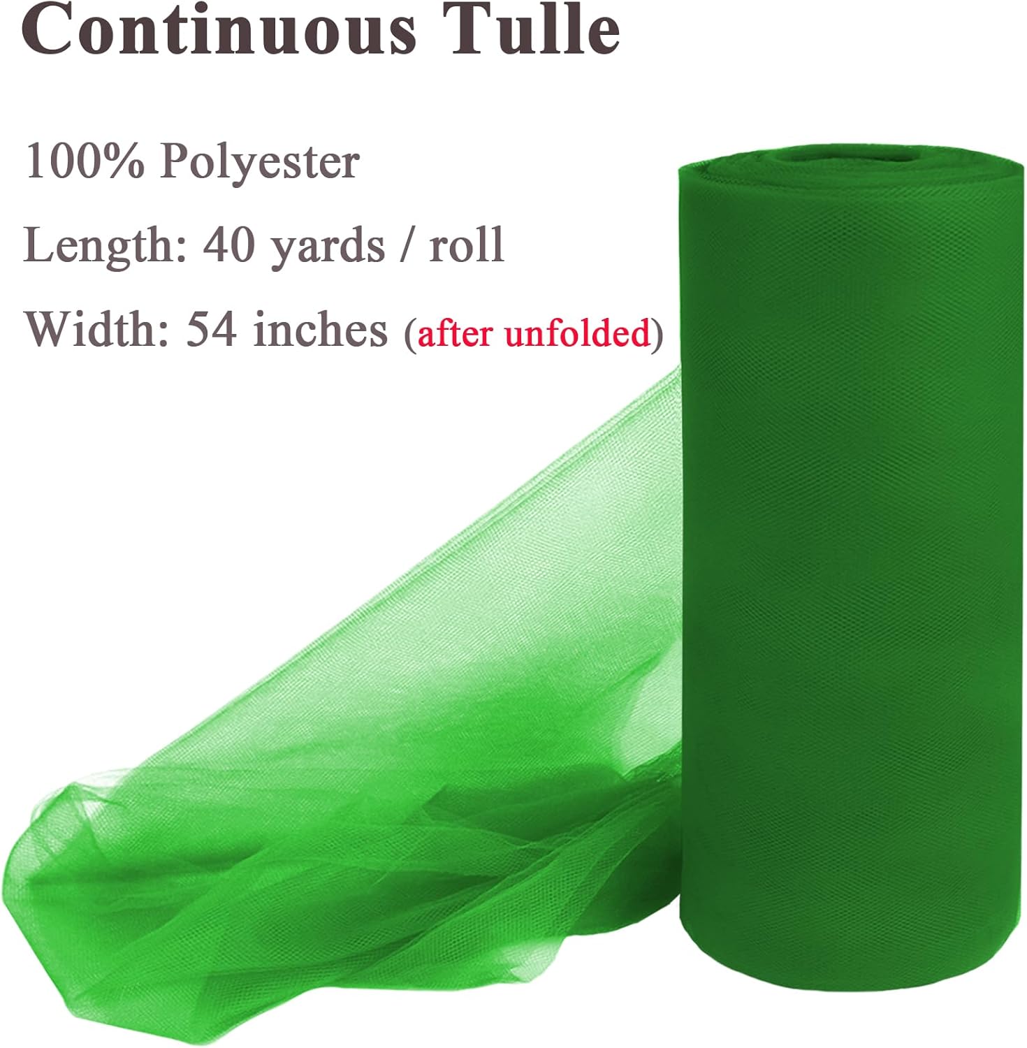 Classic Green Tulle Fabric Rolls 54 Inch x 40 Yards Large Mesh Tull Bolt for Wedding, Garden Netting, Tutu Skirt, Party Decoration and Craft Supplies
