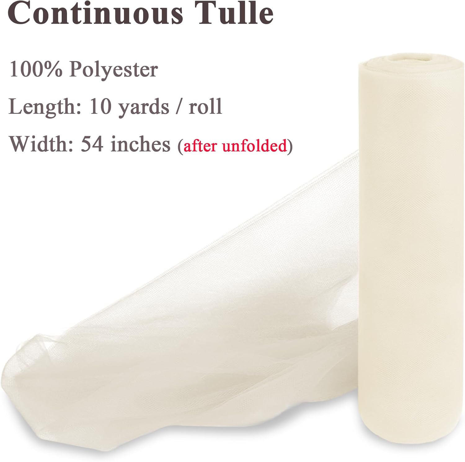 Ivory Tulle Fabric Rolls 54 Inch x 10 Yards Large Mesh Tull Bolt for Wedding, Garden Netting, Tutu Skirt, Party Decoration and Craft Supplies