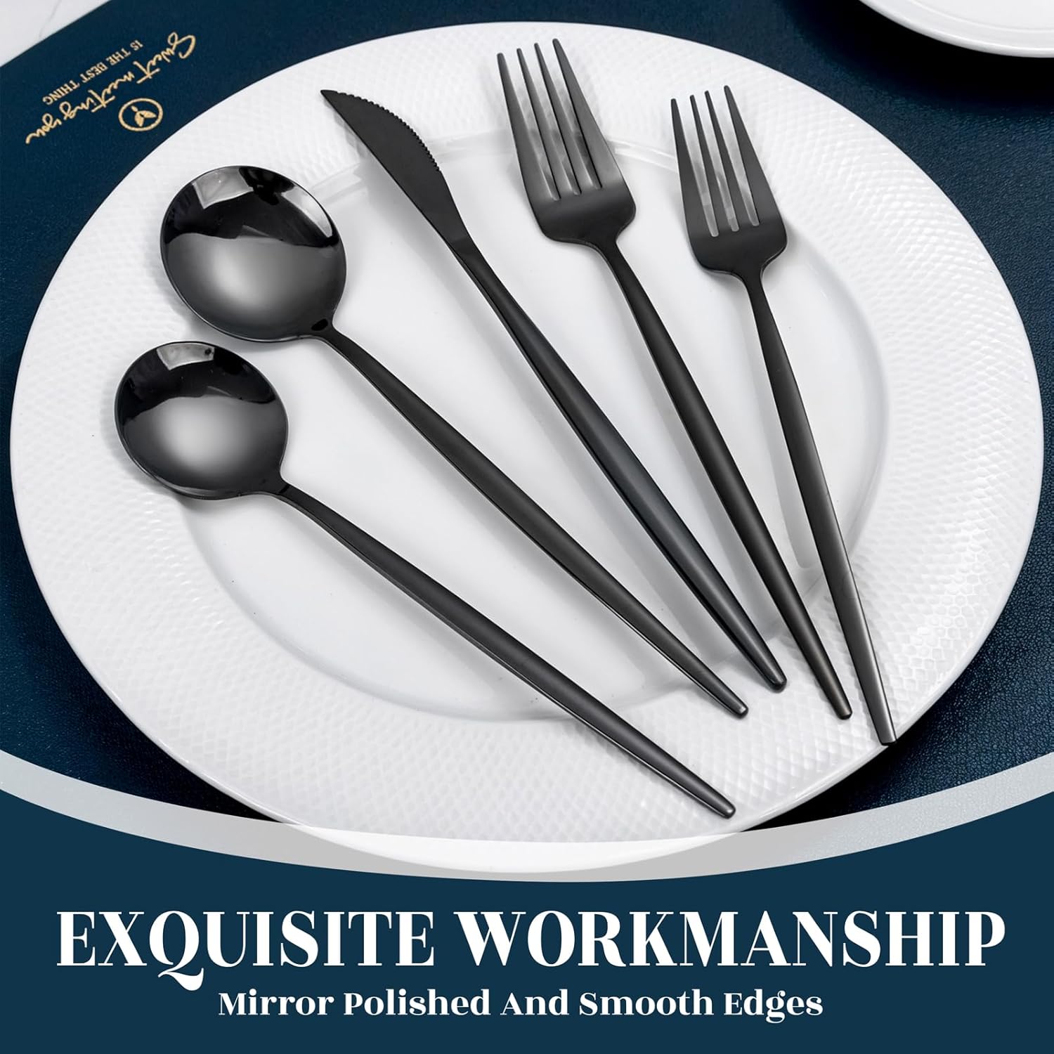 - MADE OF HIGH-QUALITY MATERIALS: Our black silverware set is made of food-grade stainless steel, which is strong, durable and not easy to break. It is safe, healthy and reliable to use. Only to create the most suitable black stainless steel silverware