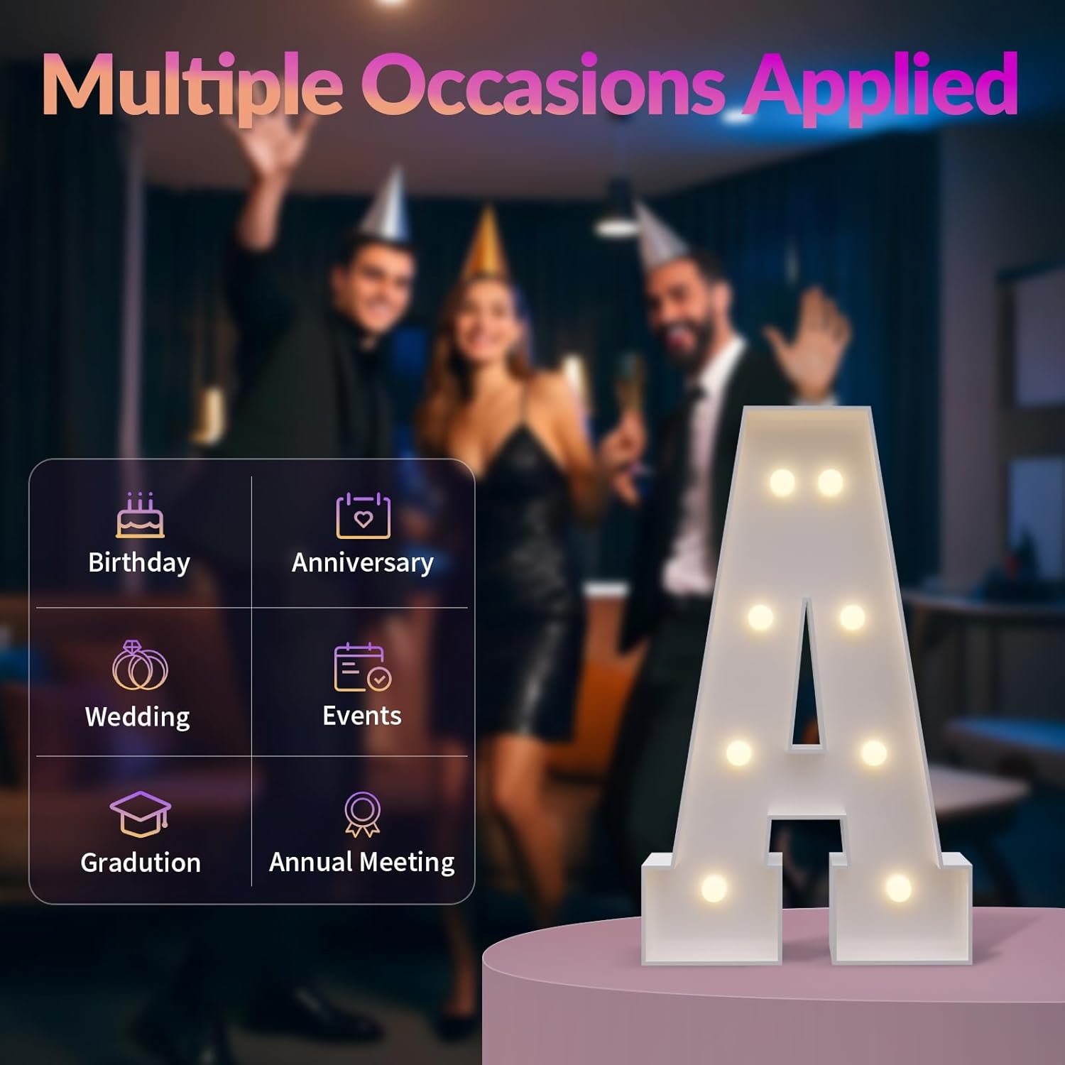 - Lighted Letters for Event Decoration: Brighten your celebrations with stunning marquee letters.Perfect for baby showers, birthdays, graduations, anniversaries, and proposals, they enhance your eventโs atmosphere while adding a personal touch.