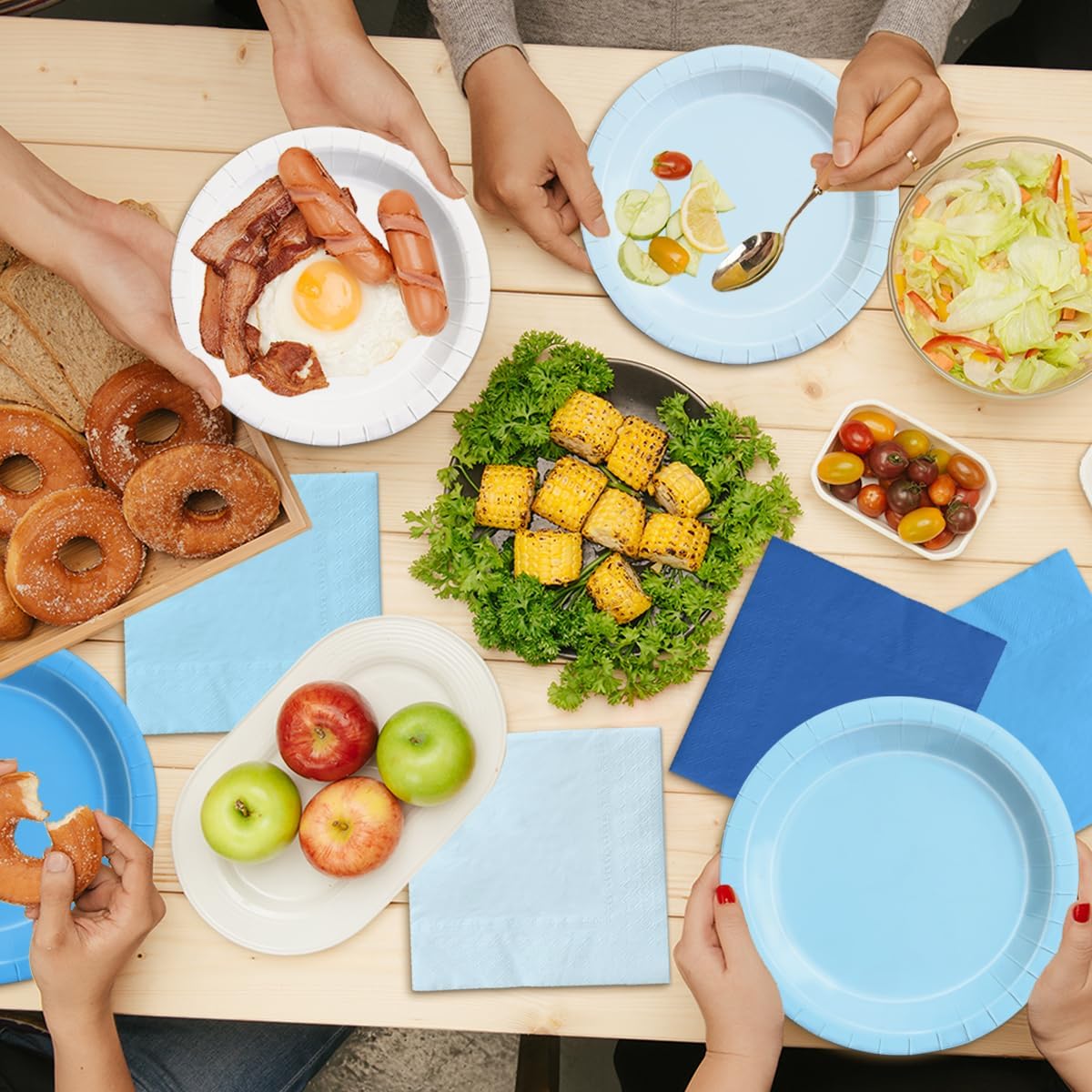 - 【DETAILS】You will get 150pcs blue party supplies,50pcs 9"plates,50pcs 7"plates and 50pcs napkins.They will bring a pleasant atmosphere to your party.