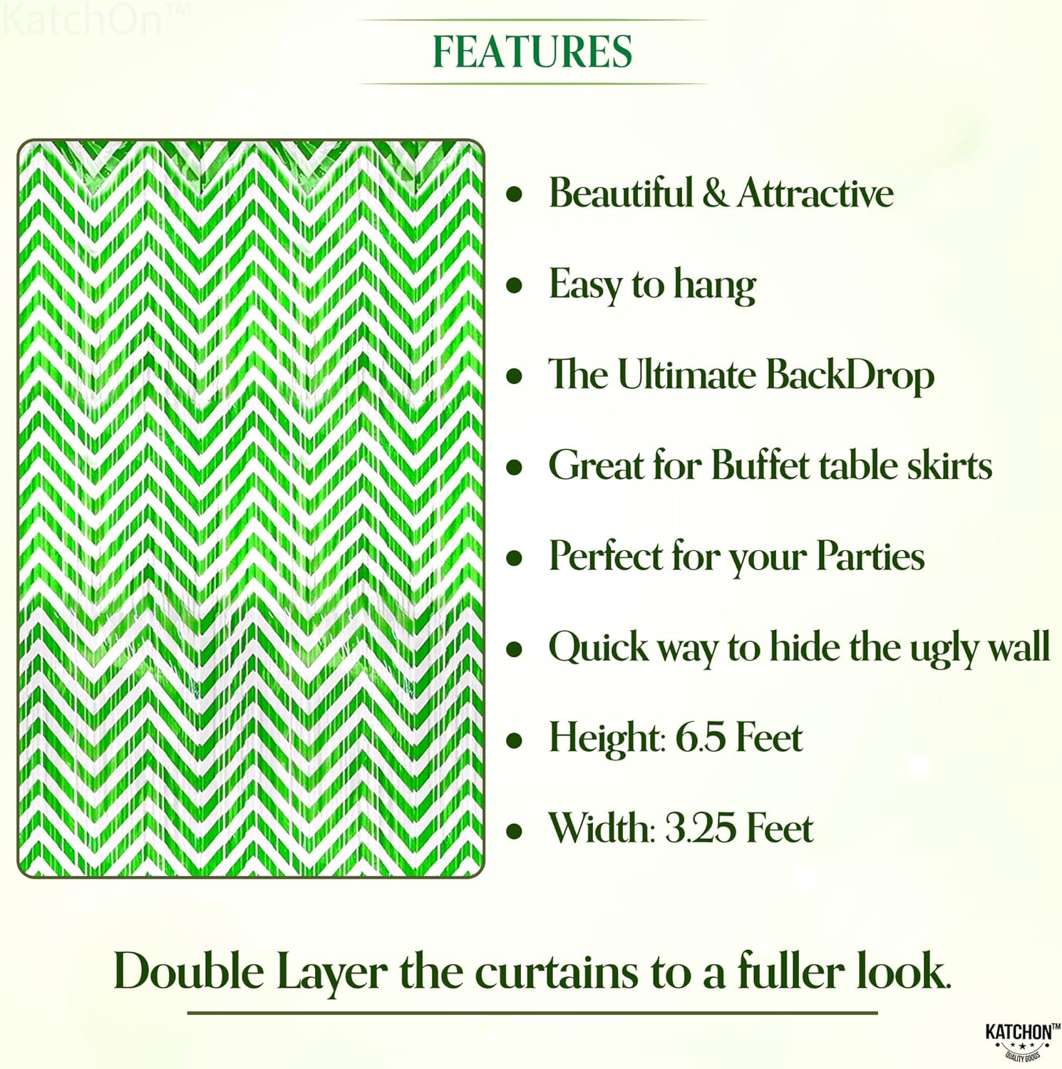 - PERFECT FOR ANY PARTY SETUP: Planning an exciting St Patricks Day backdrop for a house party, office event, or Irish-themed celebration? These green white foil fringe curtains or st patricks day decor are easy to hang and instantly transform your space into a lively, fun environment. Use them as green streamers or green background curtains for doorways or even ceilings, making your event look professionally decorated while creating an immersive festive ambiance for your guests.