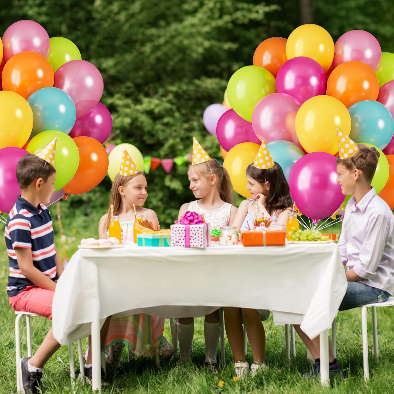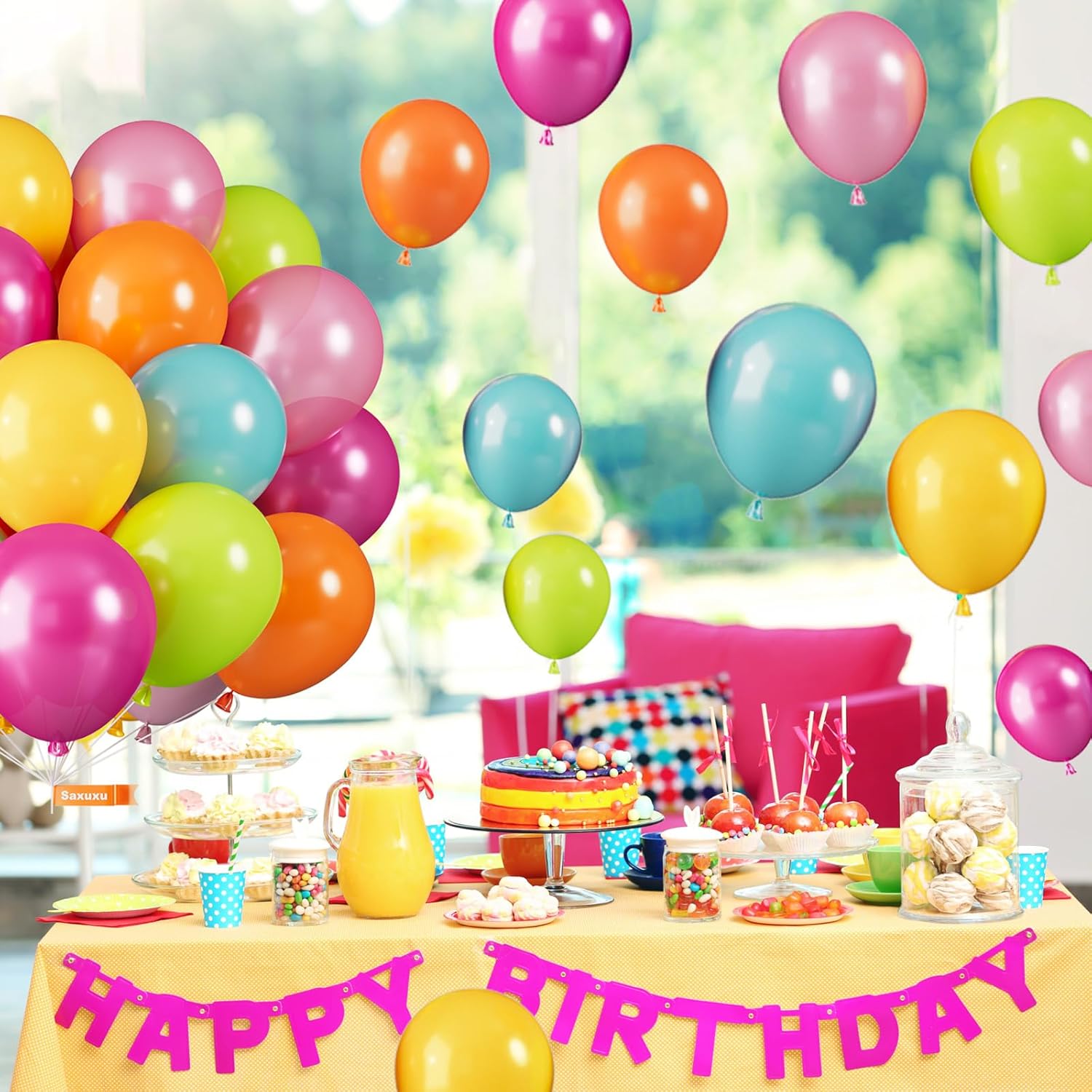 - 35 Pcs Tropical Colorful Balloons: Add a pop of charm to your party with this vibrant set of 35 pcs balloons, including 6* fruit green balloons, 6* teal blue balloons, 6* orange balloons, 5* yellow balloons, 6* pearl pink balloons, 6* pearl hot pink balloons, and 1* white ribbons. These multicolor balloons will make your party venue look stunning and create the wonderful backdrop for unforgettable moments.