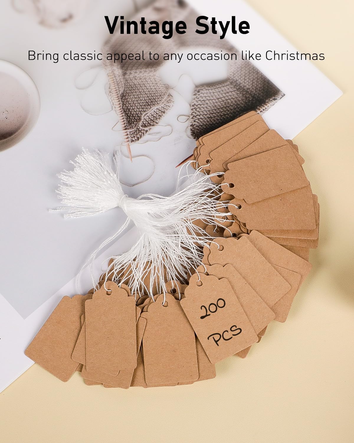 - Useful Price Tags: Totally 200 price tags in brown color. Work great for pricing clothes, shoes, jewelry, stationery, works of art, merchandise, etc. Ideal choice for clothing stores, supermarkets or shopping malls