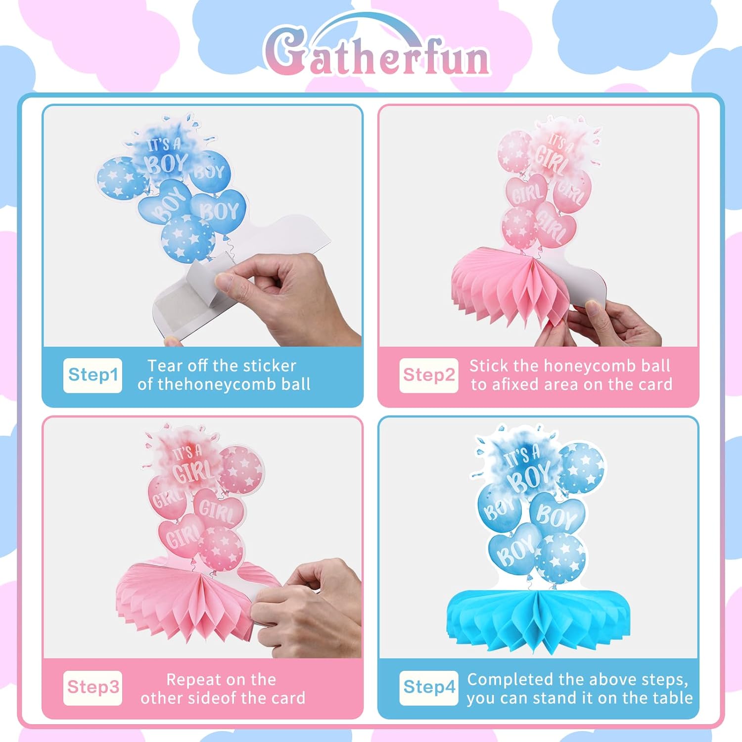 Gender Reveal Decoration Set - Includes Baby Reveal Table Decorations with Honeycomb Centerpiece for Boy or Girl Baby Shower Party Decoration