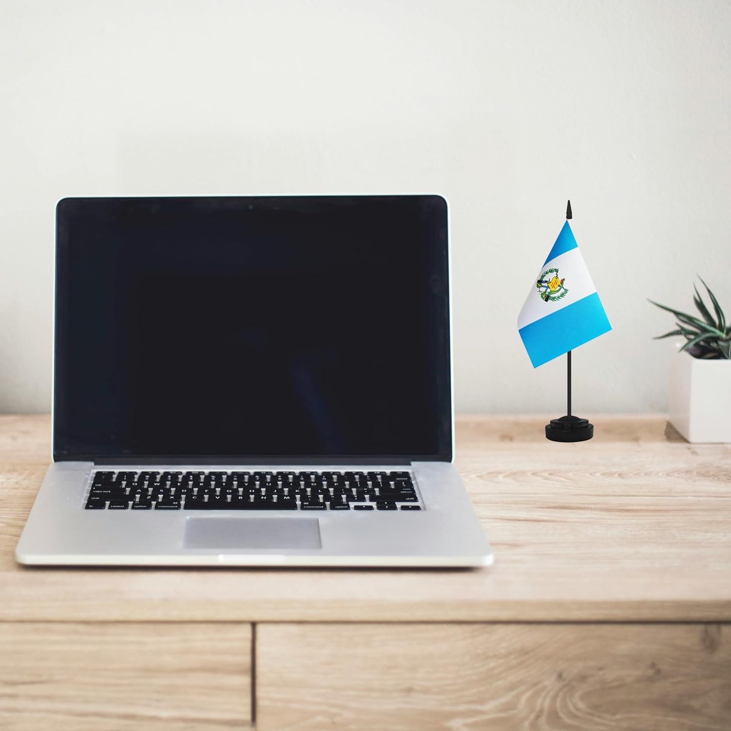 2 Pack Guatemala Desk Flag Set, Guatemalan Desktop Small Miniature Table Office Flag with 12" Black Pole and Black Base, Offices, Classroom, Home, Festival Decoration (Guatemala)