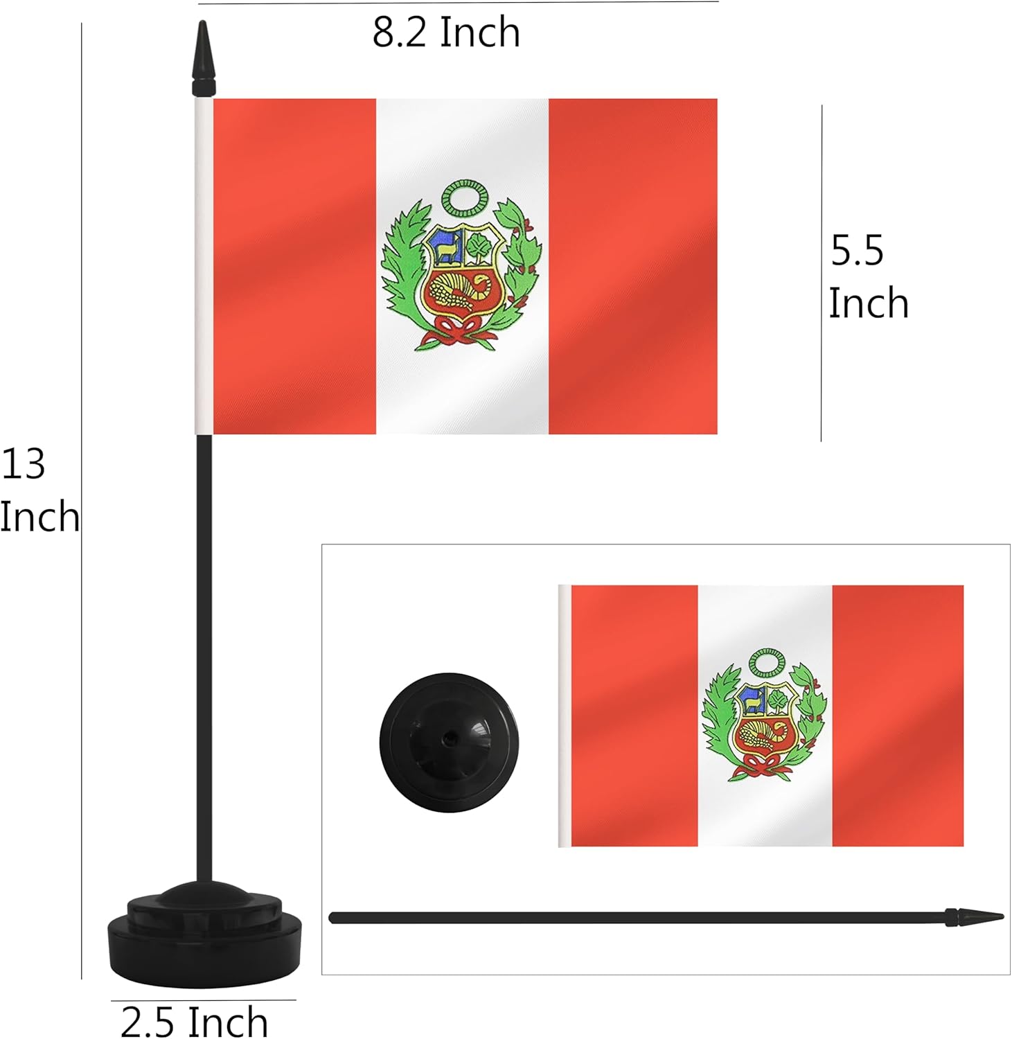2 Pack Peru Desk Flag Set, Peruvian Desktop Small Miniature Table Office Flag with 12" Black Pole and Black Base, Offices, Classroom, Home, Festival Decoration (Peru)