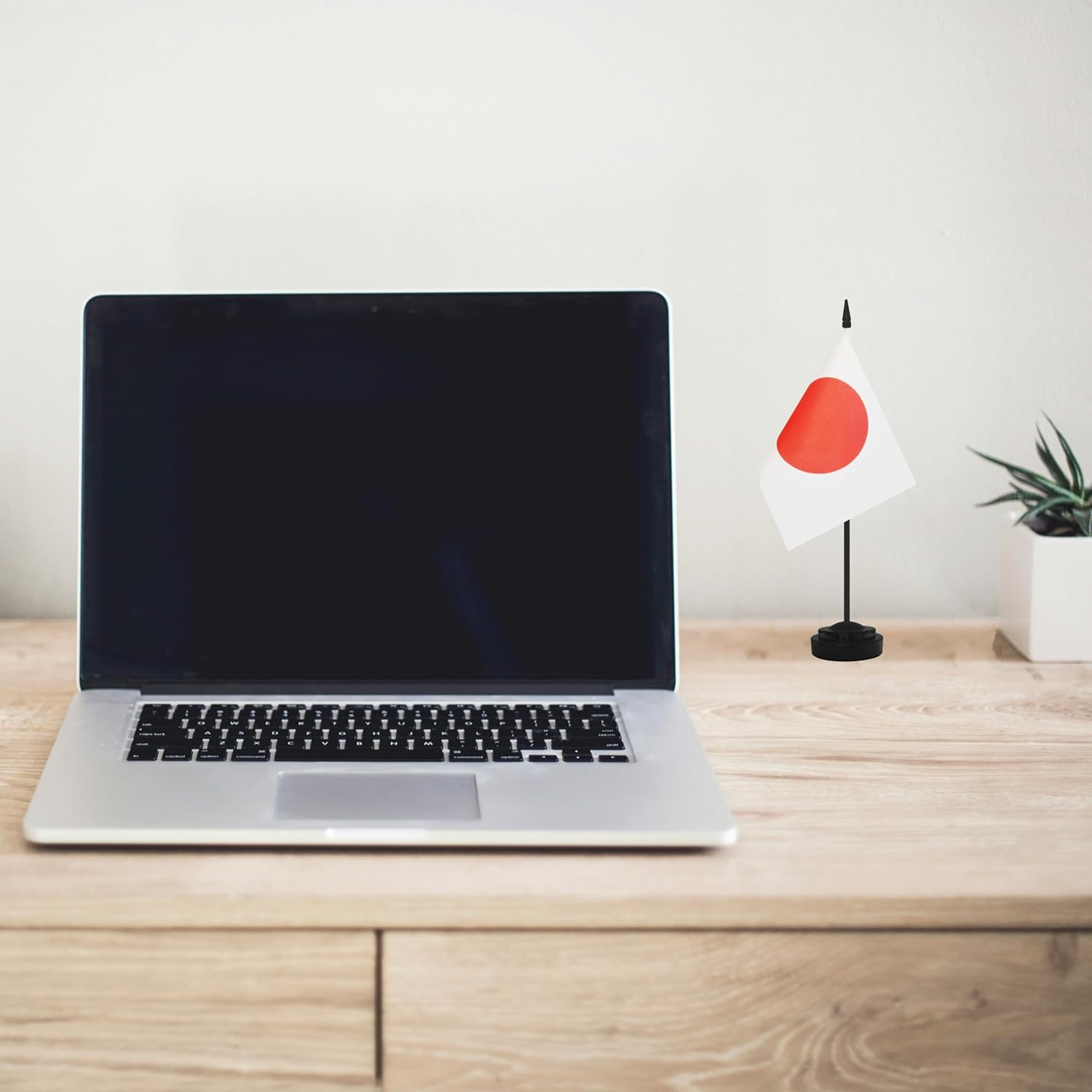 2 Pack Japan Desk Flag Set, Japanese Desktop Small Miniature Table Office Flag with 12" Black Pole and Black Base, Offices, Classroom, Home, Festival Decoration (Japan)