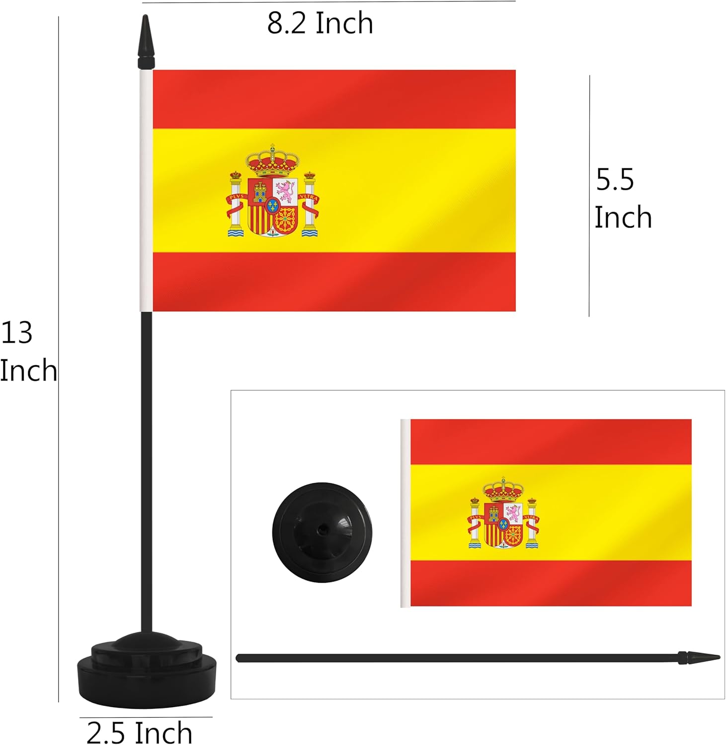 2 Pack Spain Desk Flag Set, Spanish Desktop Small Miniature Table Office Flag with 12" Black Pole and Black Base, Offices, Classroom, Home, Festival Decoration (Spain)