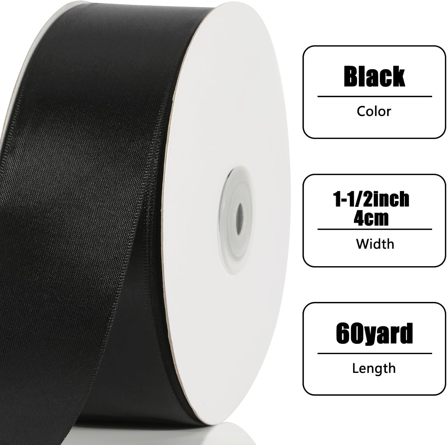 NESCCI 60 Yards Ribbon,1-1/2 Inch Black Satin Ribbon,Single Face Satin Ribbons, Perfect for Gift Wrapping,Wedding Decoration,Handmade Bows, Wrapping Bouquet and More