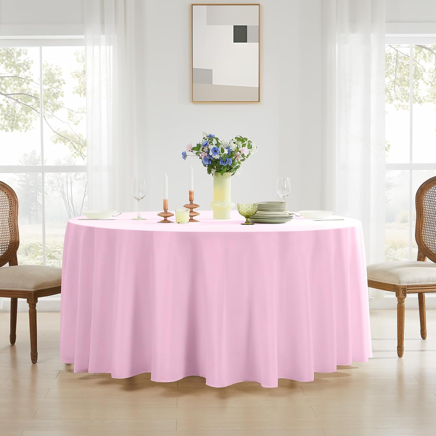 Round Tablecloth 120 Inch 6 Pack Pink Tablecloths Washable Decorative Linen Polyester Table Clothes Cover for Dining Table Banquets Buffet Parties and Wedding