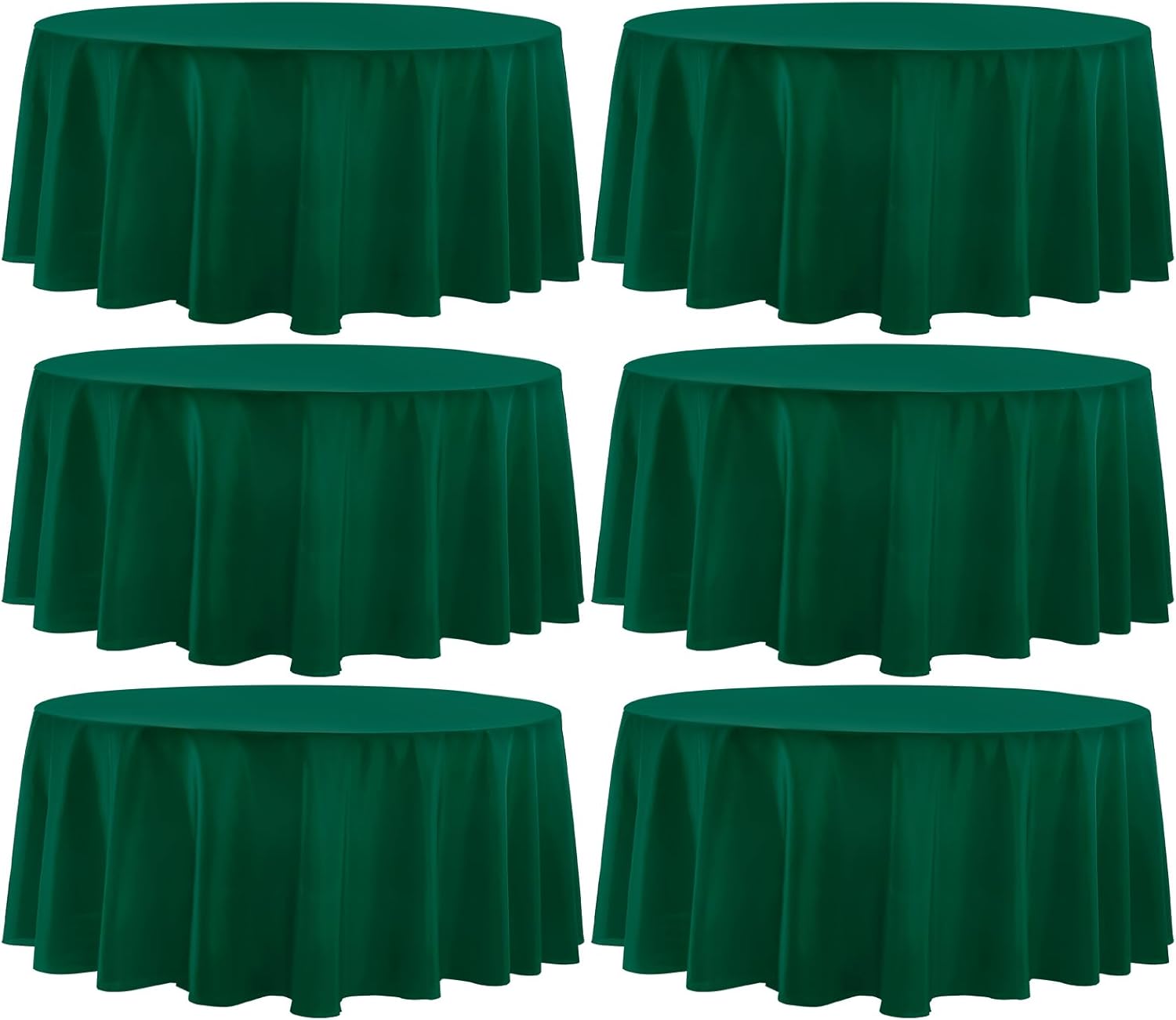 Round Tablecloth 132 Inch 6 Pack Dark Green Tablecloths Washable Decorative Linen Polyester Table Clothes Cover for Dining Table Banquets Buffet Parties and Wedding