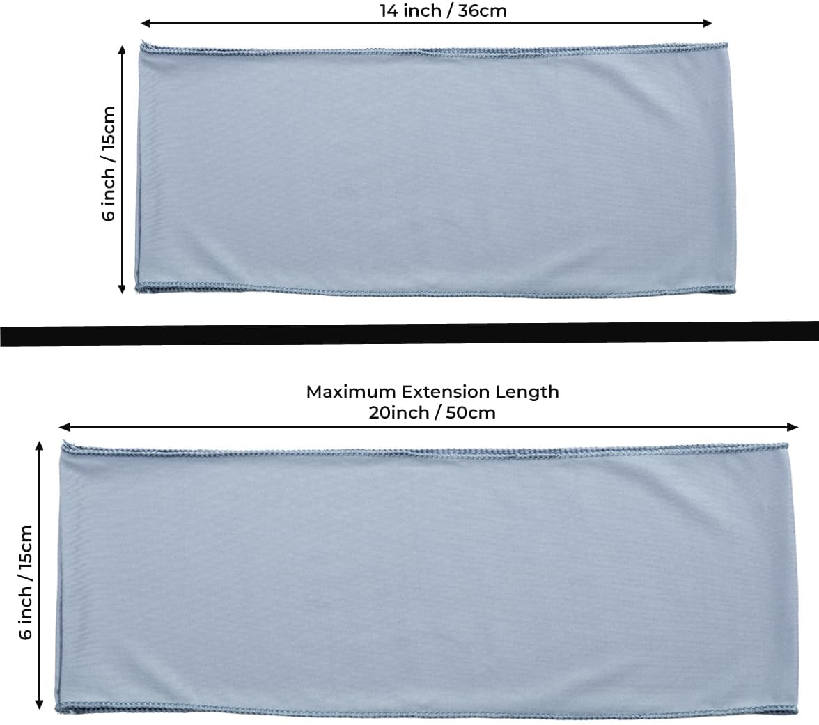 - π PERFECT SIZE: High quality spandex with good elasticity, stretch to fit almost chairs. It is 90% Polyester and 10% Spandex. Size: 5.9" x 14" Or 14cm (W)*35cm(L). Fit for all type chairs (35-50CM Chair Back Width).