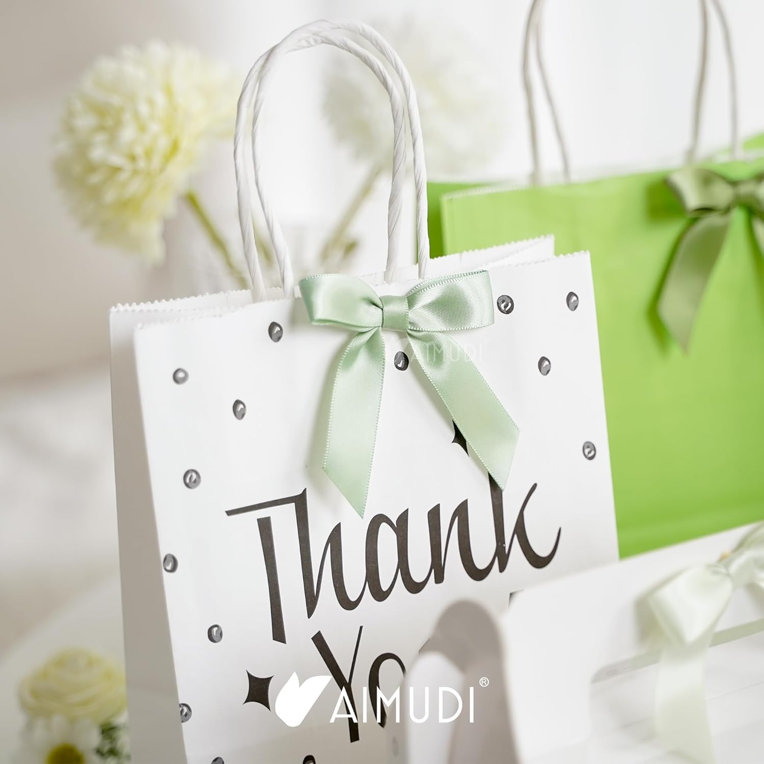 AIMUDI 5 Colors Sage Green Ribbon Bows 2.5" Satin Twist Tie Bows for Gift Wrapping Premade Satin Bow for Making Crafts Treat Bag Baby Shower Birthday Party Wedding Decoration, 50 PCs