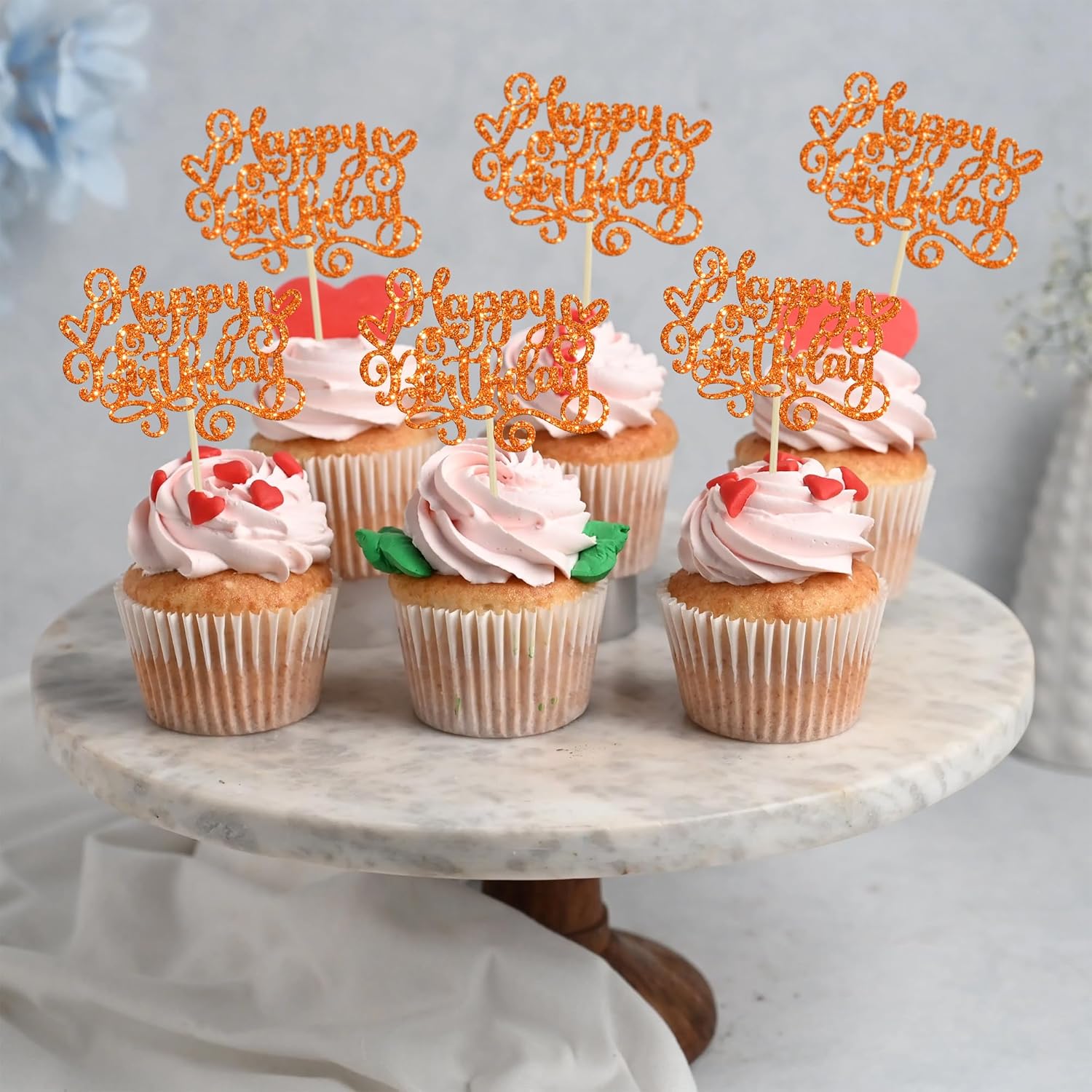 - --Happy Birthday Cupcake Toppers are so cute and good for happy birthday theme party, wedding anniversary celebrating theme party cupcake decorations. They can make your cupcake more attractive and bring the fun to your party. You can also apply them for ice cream, fruits, cookies and other desserts.