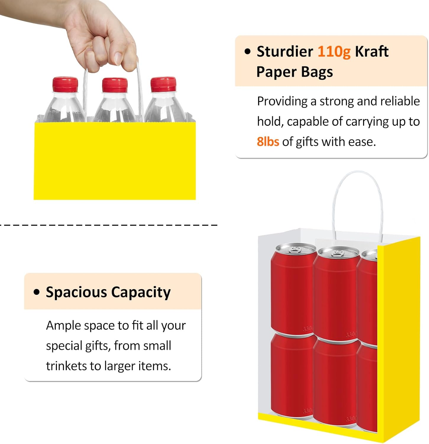 BagDream 8x4.25x10.5 Inch 100Pcs Yellow Gift Bags Medium, Kraft Paper Bags with Handles Bulk for Welcome Party Favors, Baby Shower, Goody, Treat, Retail, Grocery Paper Sacks