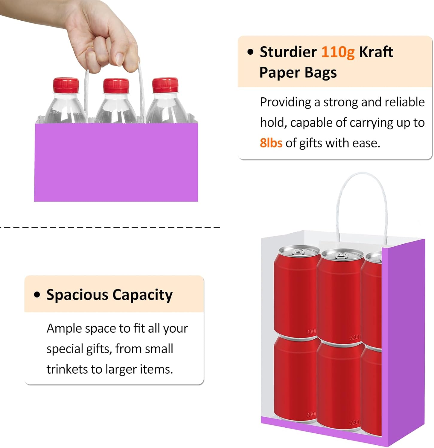 - Make your gifts pop with these vibrant purple bags! Their rich color carries not just your items, but a sense of romance and elegance. Perfect for birthday, baby shower, welcome bags, party favors bags, goodie bags, retail packaging, and more