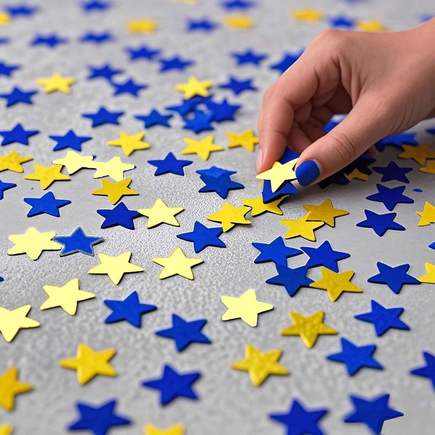Blue Yellow and Gold Glitter Star Confetti for Party and Tables Decoration,Eid Ramadan Festival Theme Retirement Baby Shower Birthday Wedding Graduation Party,1.2inch in Diameter,200pc