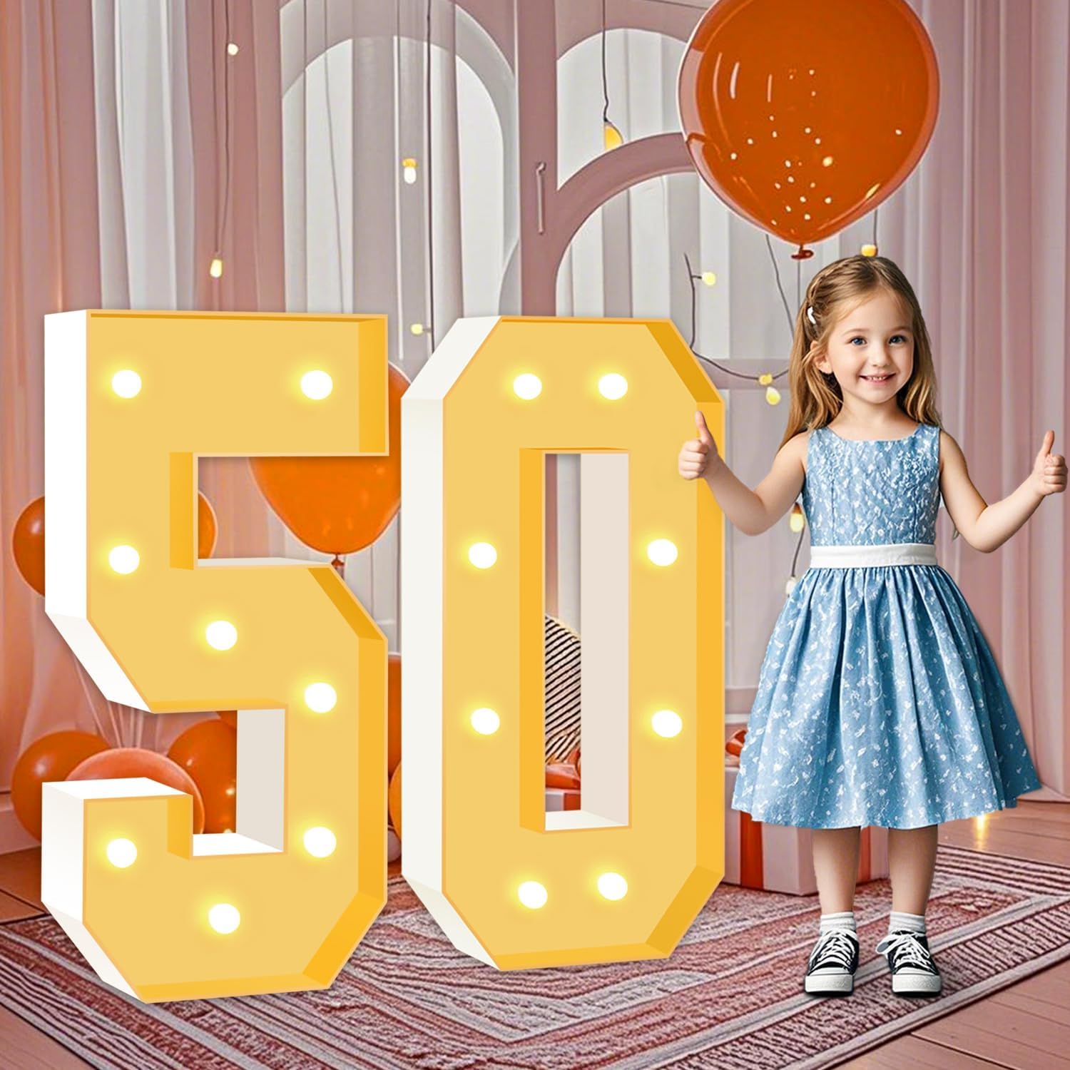 3FT Marquee Numbers 50, Large Light Up Numbers 50th Birthday Decorations for Her Him, Cardboard Numbers for Women Men Anniversary Party Decor Backdrop, DIY Foam Board Mosaic Number Sign