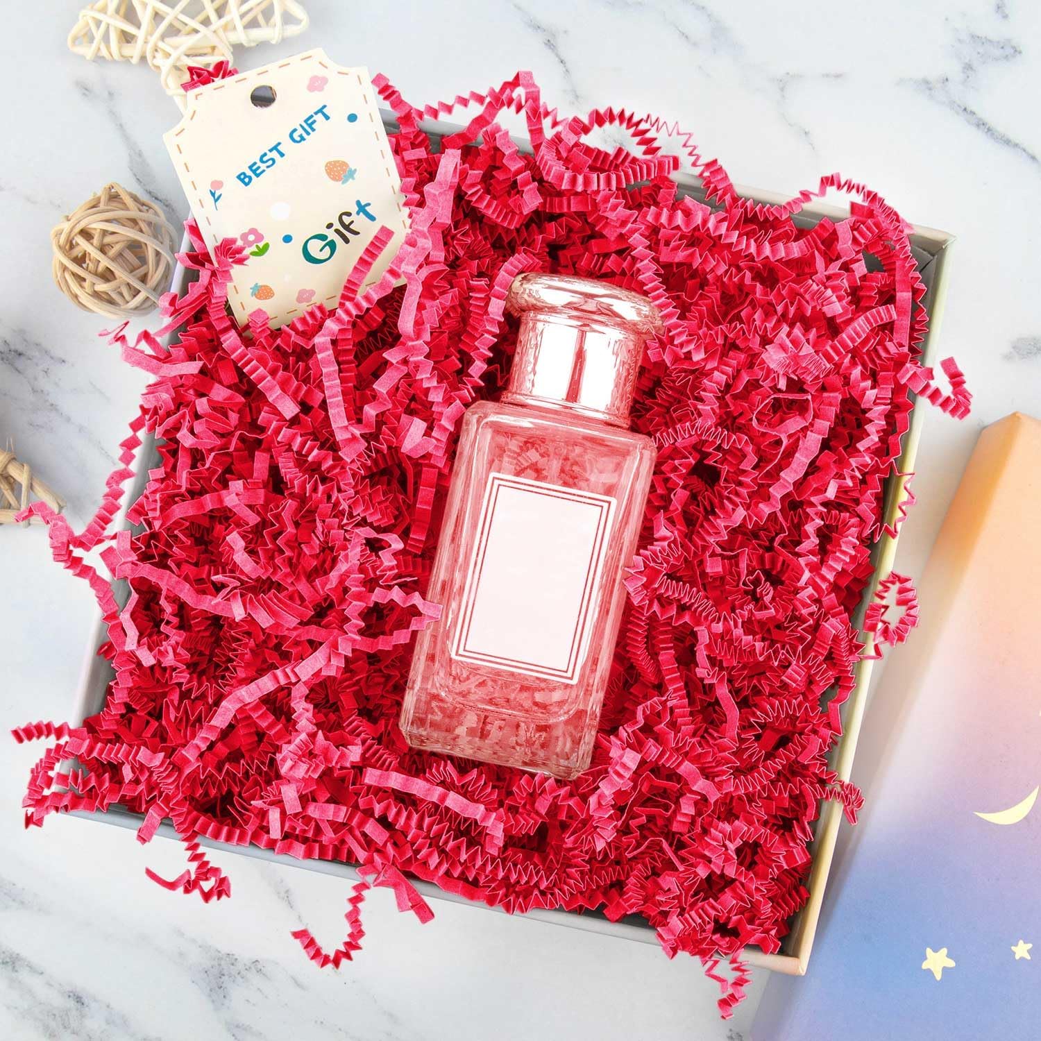 - Perfect Size & Weight: Our crinkle paper filler comes in a generous 8.5oz package, providing you with enough material to fill multiple small gifts baskets, boxes, or decorative items