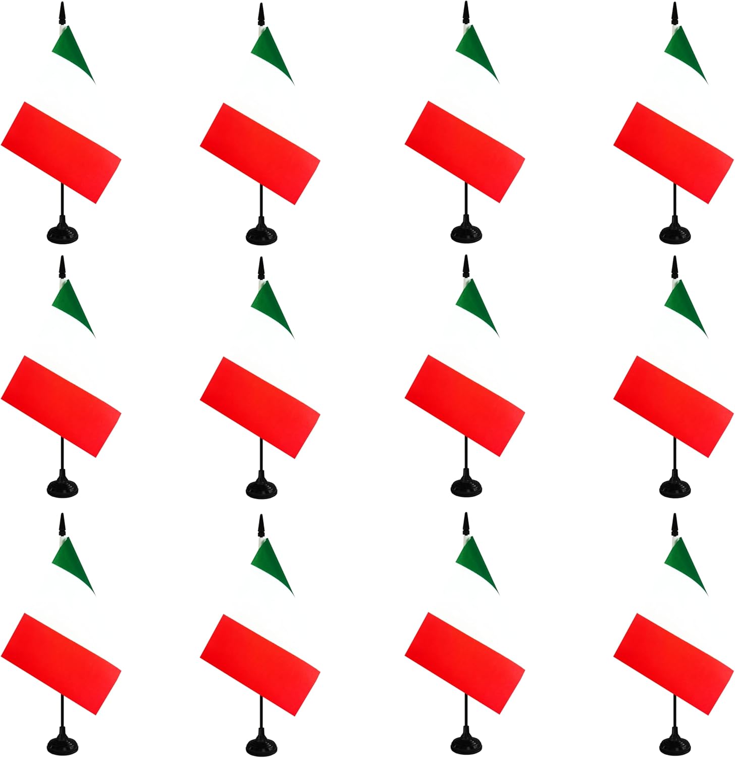 Italy Desk Flag, 12 Pack Italian Table Office Flag with Black Solid Pole and Stand Base, International Country Flag, Festival Celebration, Classroom Meeting Desktop Decor (Italy)