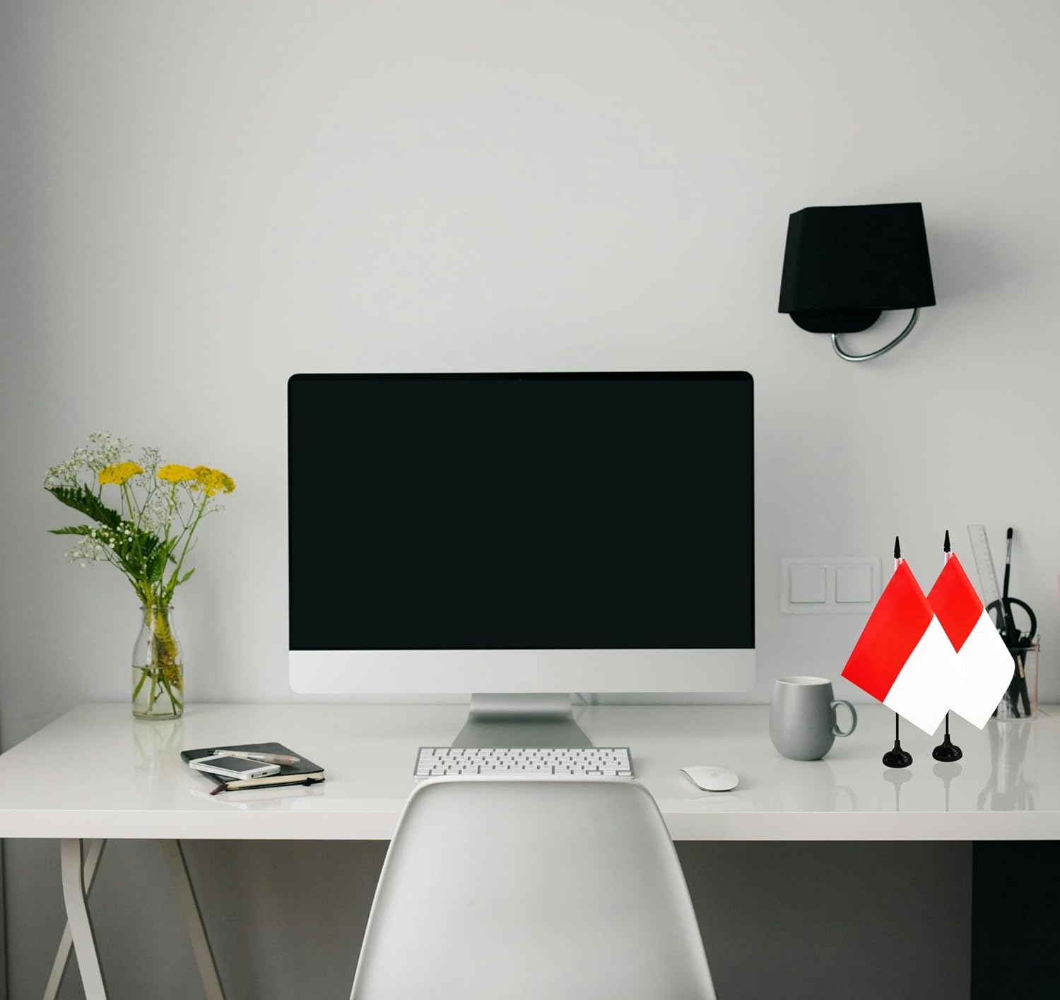 Indonesia Desk Flag, 12 Pack Indonesian Table Office Flag with Black Solid Pole and Stand Base, International Country Flag, Festival Celebration, Classroom Meeting Desktop Decor (Indonesia)