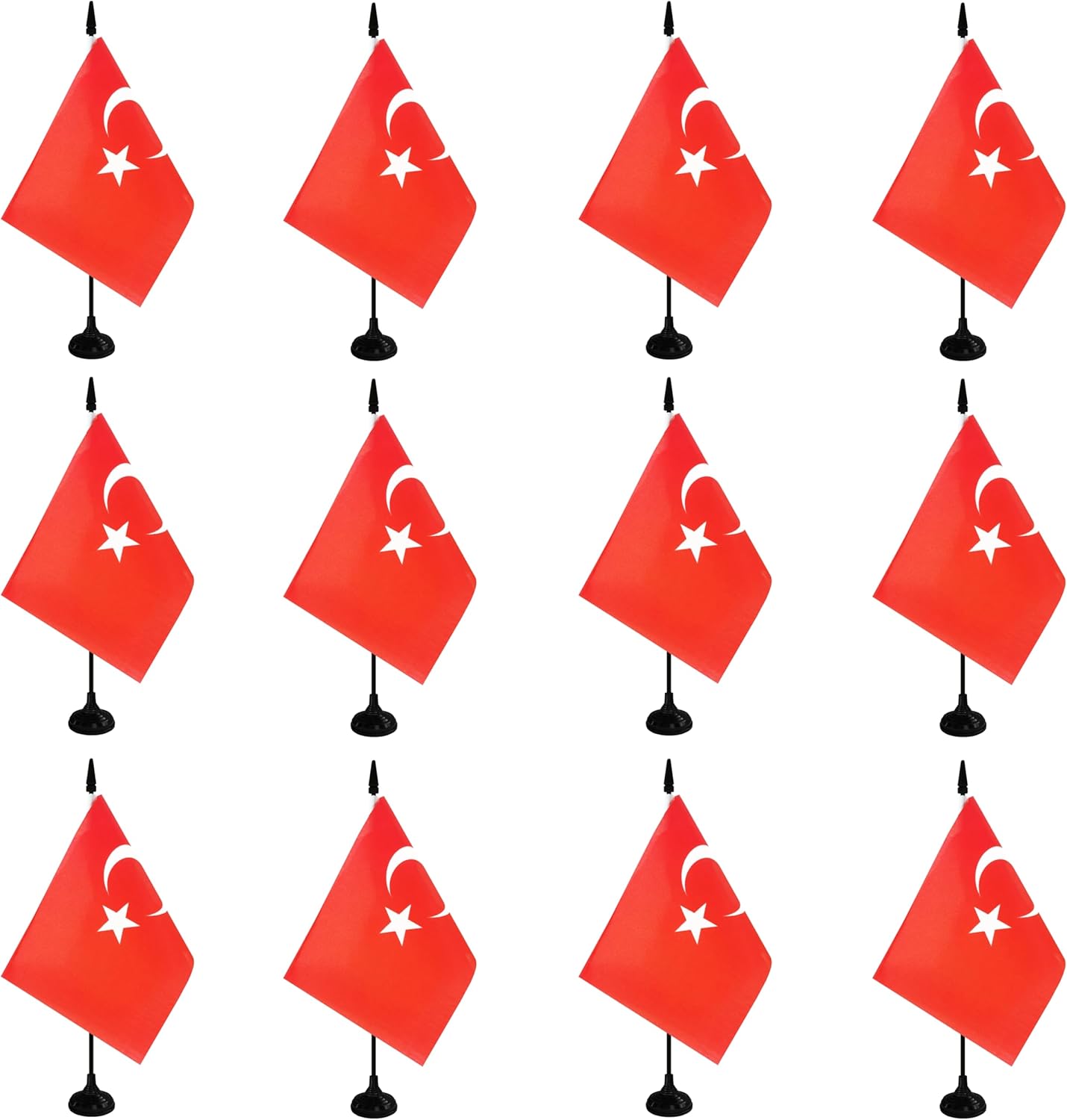 Turkey Desk Flag, 12 Pack Turkish Table Office Flag with Black Solid Pole and Stand Base, International Country Flag, Festival Celebration, Classroom Meeting Desktop Decor (Turkey)