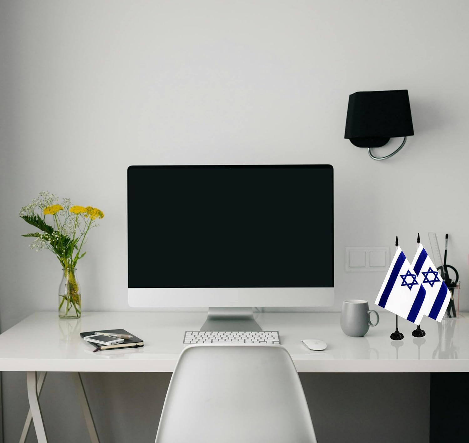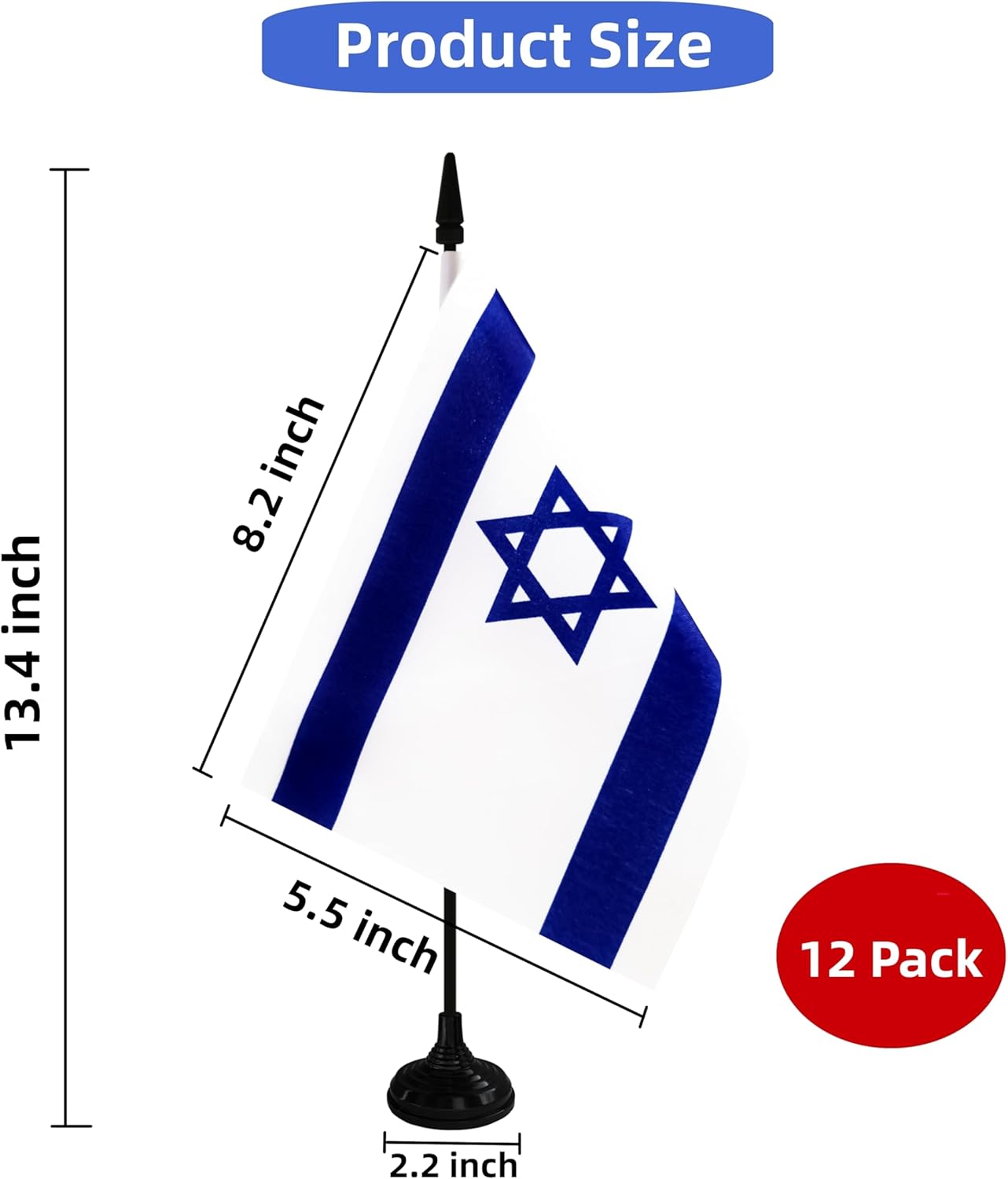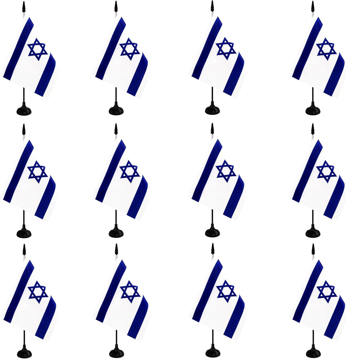Israel Desk Flag, 12 Pack Israeli Table Office Flag with Black Solid Pole and Stand Base, International Country Flag, Festival Celebration, Classroom Meeting Desktop Decor (Israel)