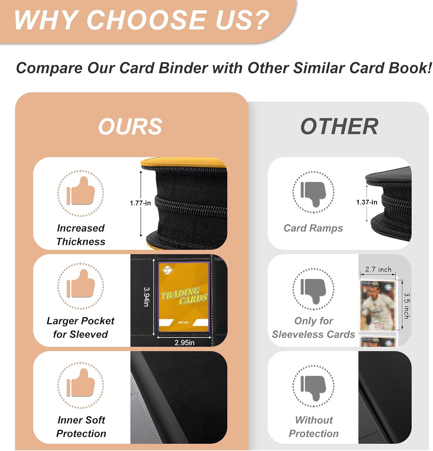 - Easy to Use and Versatile: Whether you have bare cards, single-sleeved cards, or double-sleeved cards, this 9 pocket card binder can accommodate them all. Easily insert and remove cards without any fear of damage, ensuring a seamless user experience.