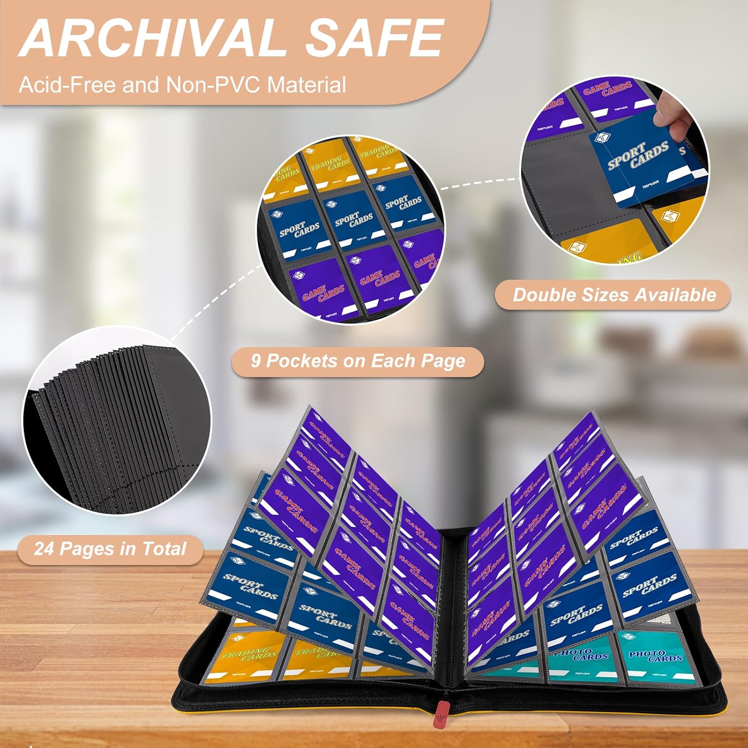 - 9 Pocket Card Binder: With 24 double-sided card pages, our trading card binder offers a whopping 432 card slots for maximum storage. Whether you're a serious card collector or simply need a place to organize your collectible cards, this card album provides ample room for all your needs.