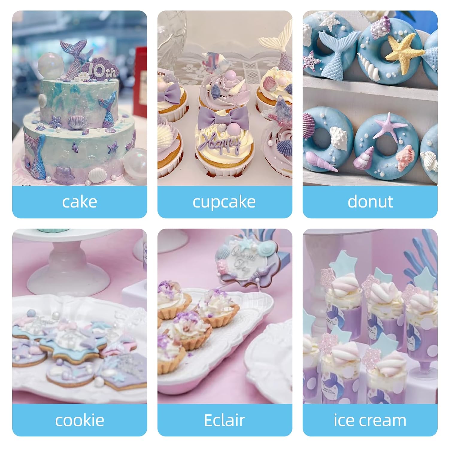 - Versatile Dessert Decoration: Our sprinkles includes shells and stars, colorful candy sprinkle. perfect for meeting all your baking decoration needs.The sugar decorations are edibled candies. It is normal for large candies to have a hard texture and can be eaten with confidence.After baking, decorate the cookies or cake with pearl sugar to avoid melting